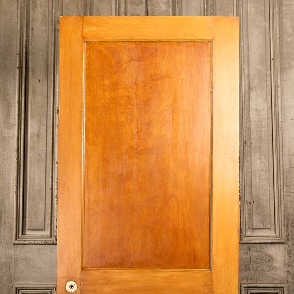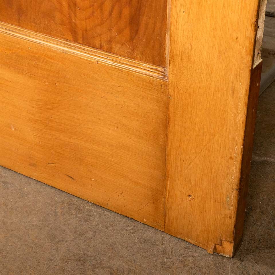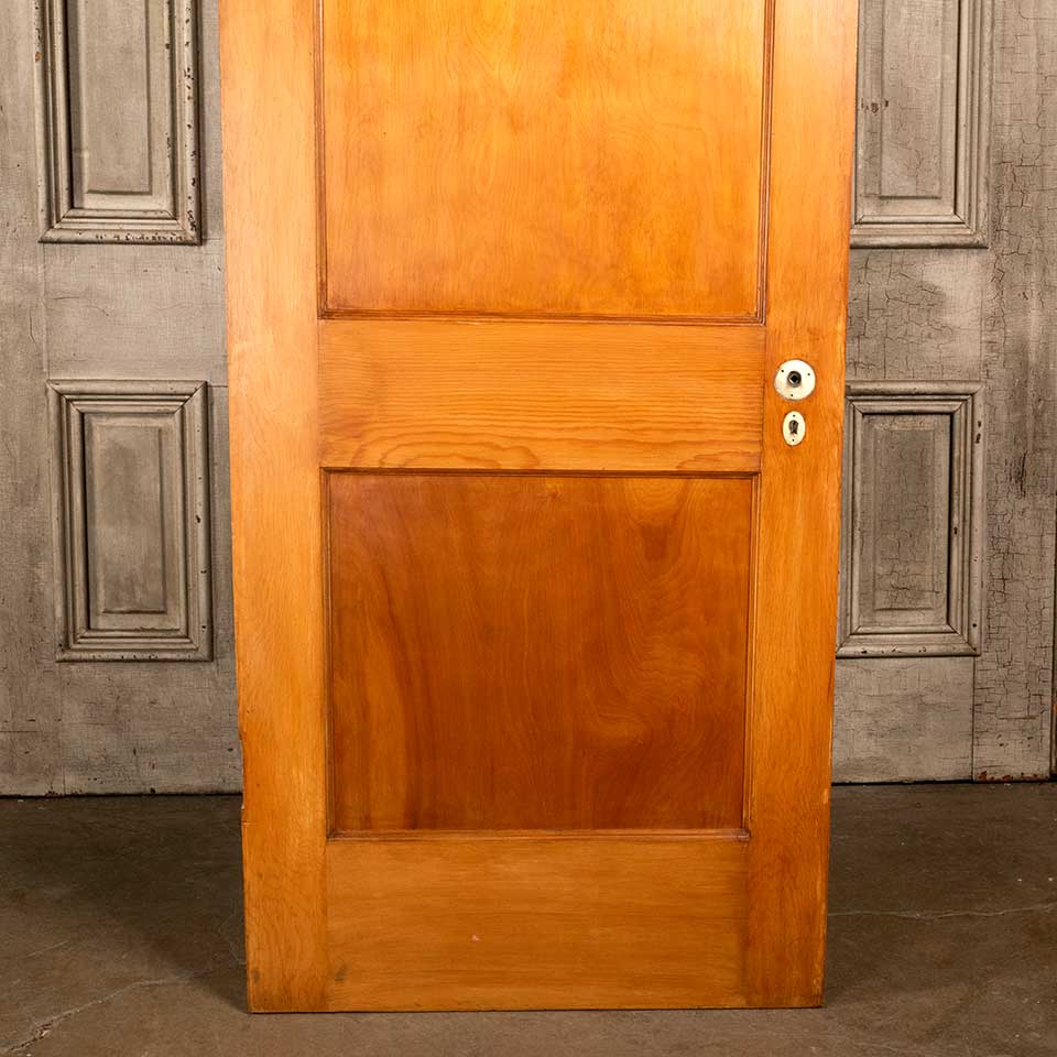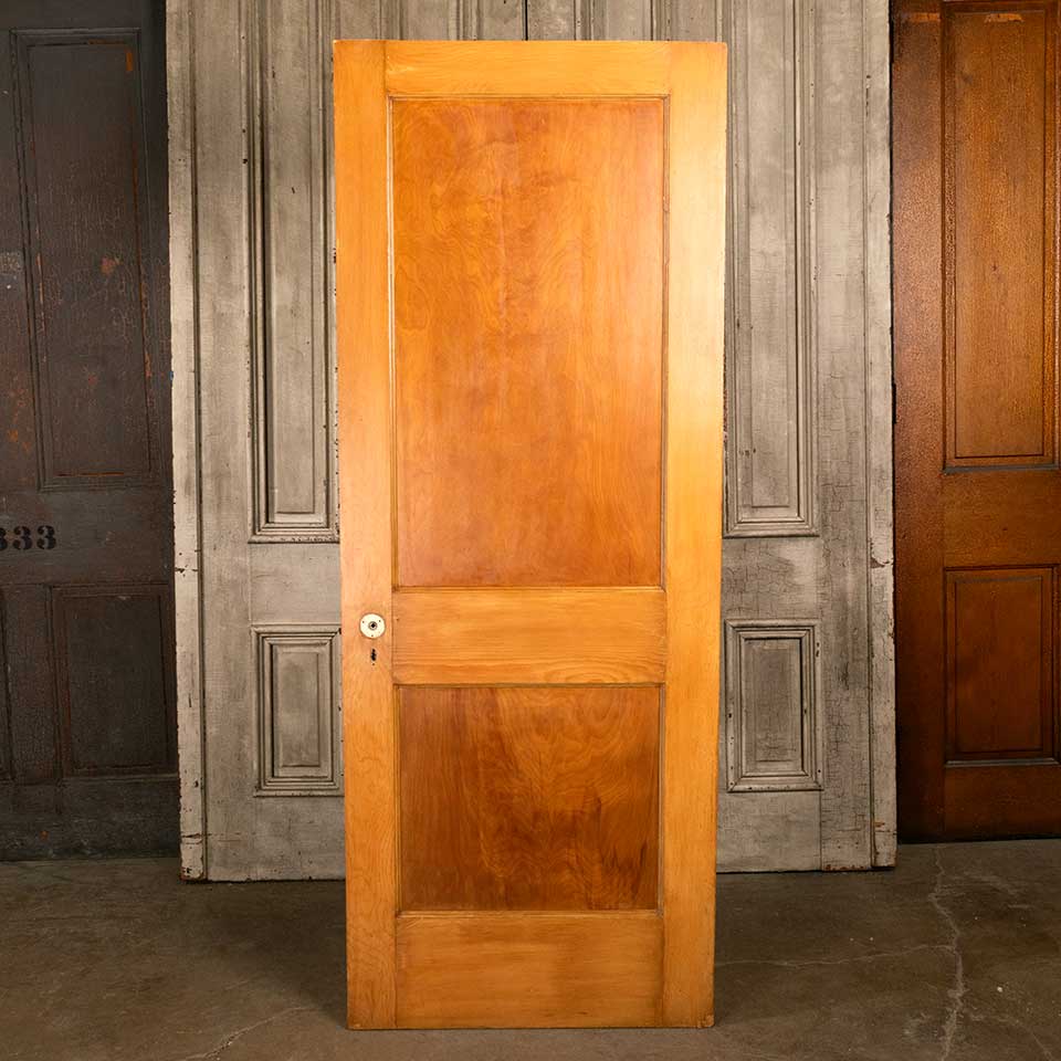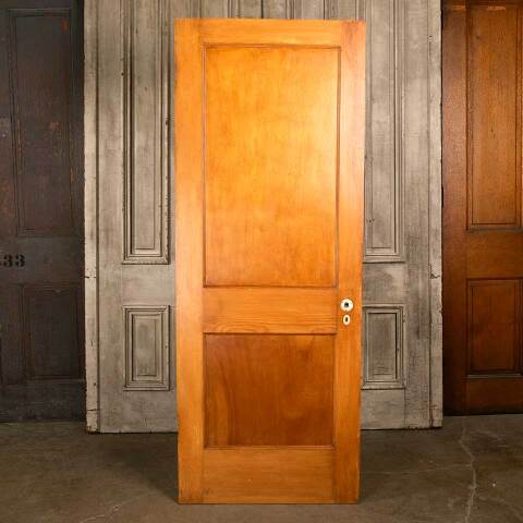 Architectural salvage antique two panel pine wood interior door with mortise lock measuring approx. 29 3/4" wide x 77 1/2" tall x 1 3/8" thick. See photos to evaluate condition.