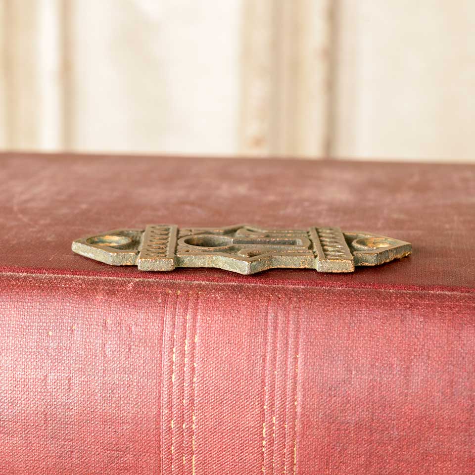 Architectural salvage ornate antique bronze Victorian door skeleton keyhole escutcheon cover plate hardware with Eastlake patterns measuring approx. 1 1/4" wide x 2 1/4" tall x 1/16" thick. Color and condition vary.