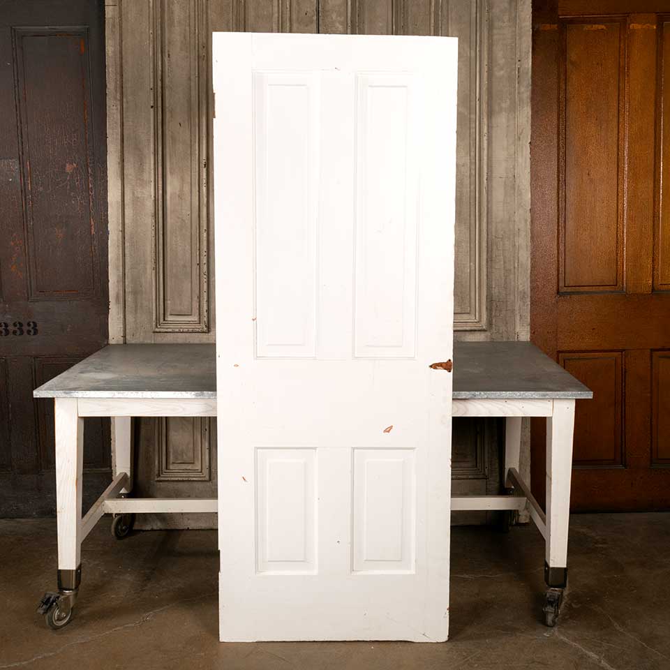 Architectural salvage antique four panel painted wood interior door measuring approx. 30" wide x 77 1/8" tall x 1 3/8" thick. See photos to evaluate condition.