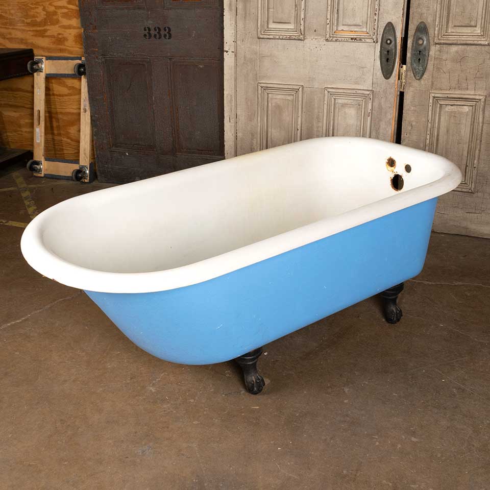 Architectural salvage antique cast iron porcelain enameled clawfoot bathtub measuring approx. 30" wide x 60" long x 22 1/2" tall. See photos to evaluate condition.