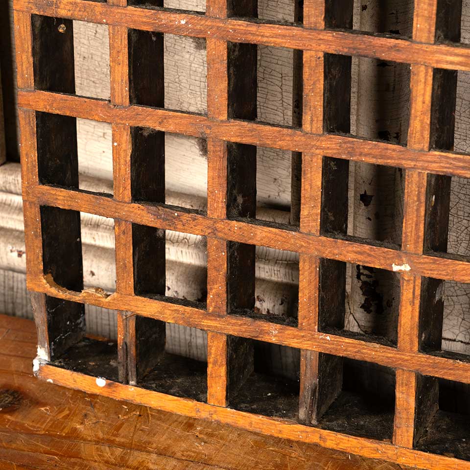 Hard to find architectural salvage antique oak wood cold air return grate floor vent cover measuring approx. 16" x 40" x 1 1/4" front to back. See photos to evaluate condition.