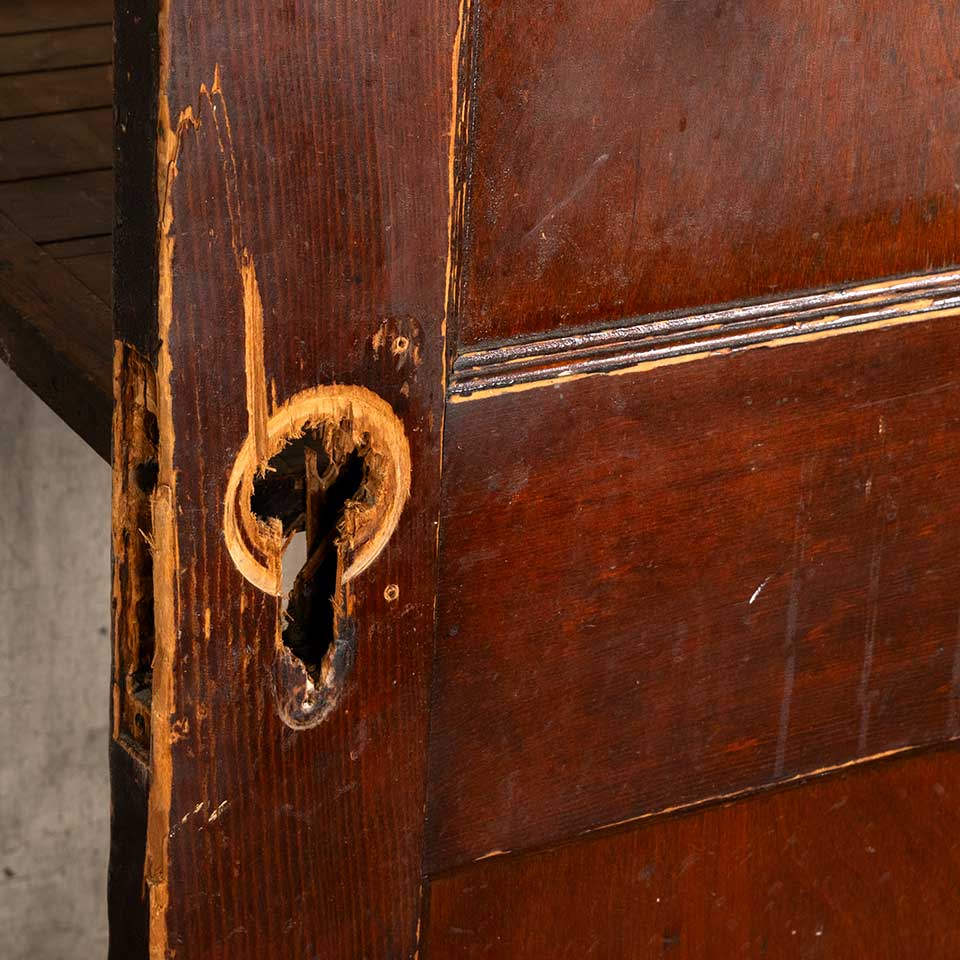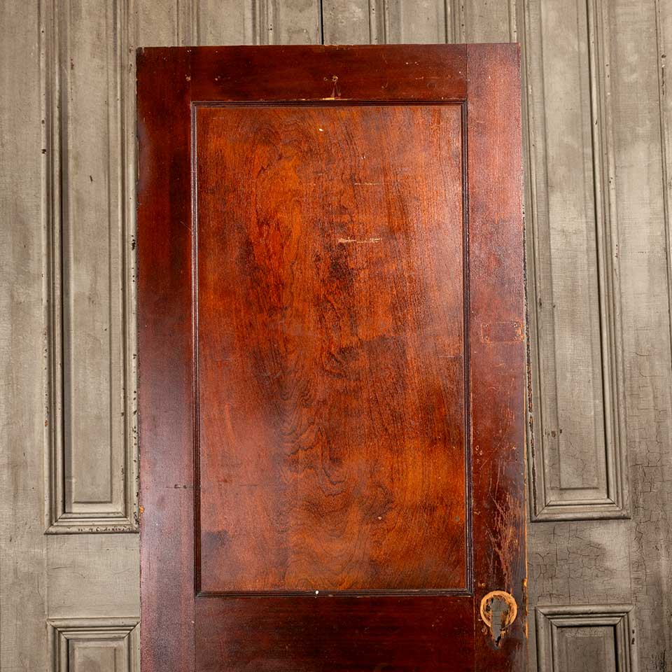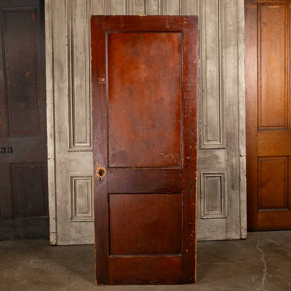 Architectural salvage antique two panel pine wood interior door measuring approx. 29 3/4" wide x 77 1/4" tall x 1 3/8" thick. There's a split in the upper panel. See photos to evaluate condition.