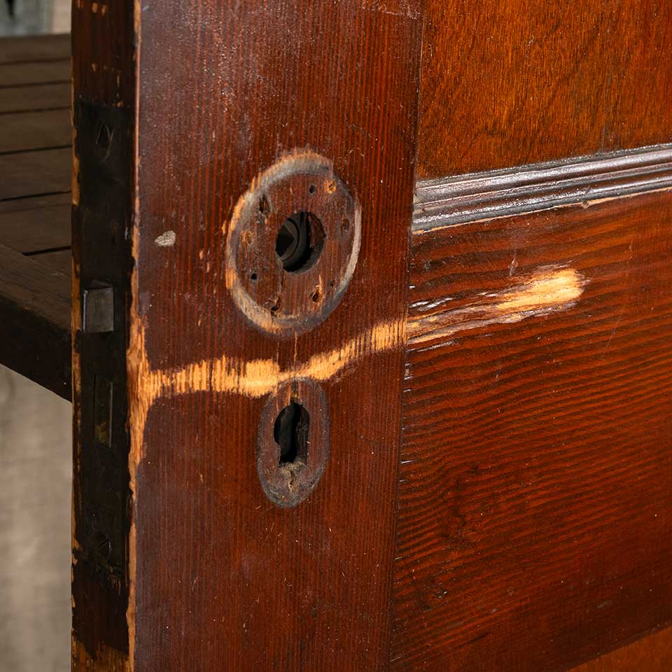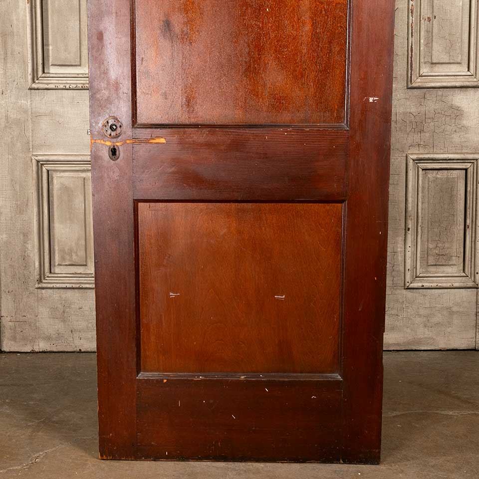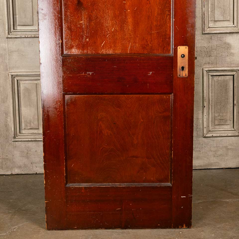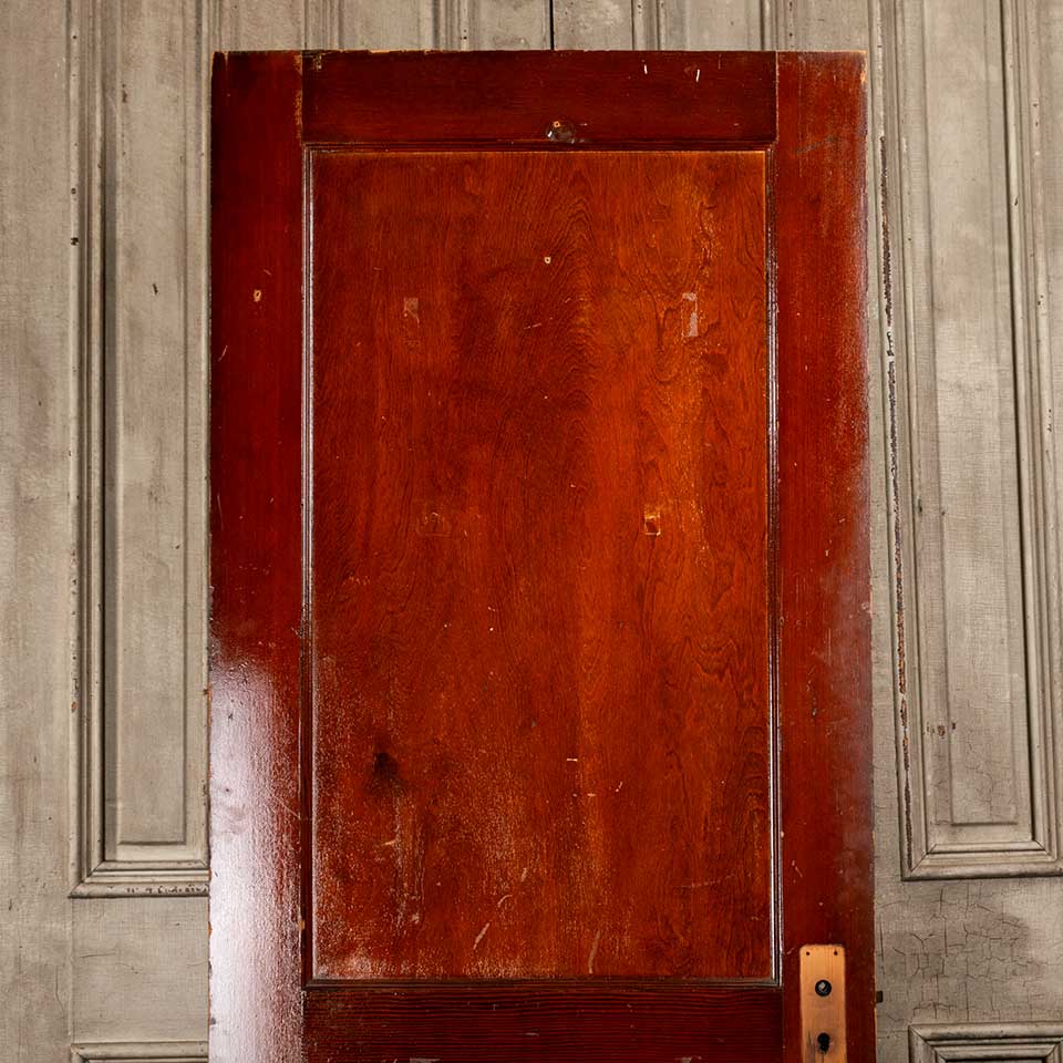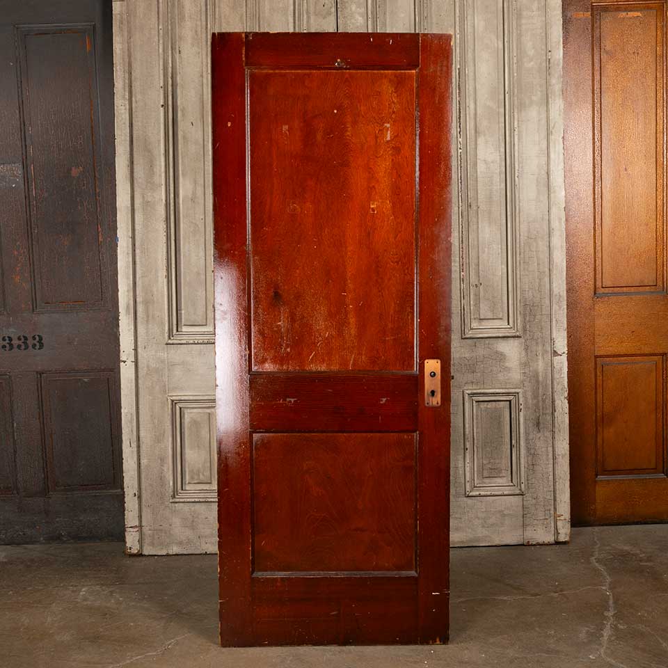Architectural salvage antique two panel pine wood interior door with mortise lock measuring approx. 29 15/16" wide x 77 3/4" tall x 1 3/8" thick. See photos to evaluate condition.