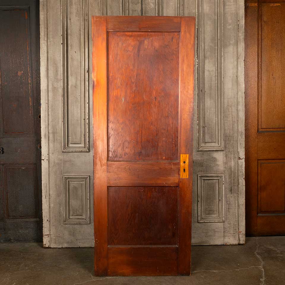 Architectural salvage antique two panel pine wood interior door with mortise lock measuring approx. 29 3/4" wide x 77 3/4" tall x 1 3/8" thick. See photos to evaluate condition.
