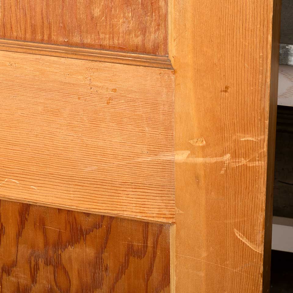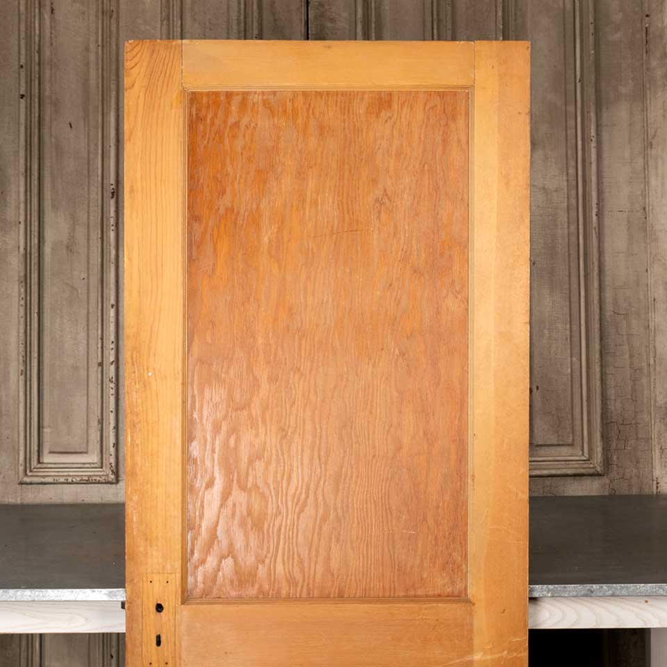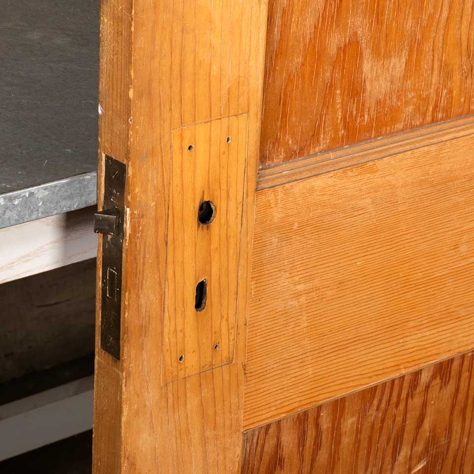 Architectural salvage antique two panel pine wood interior door with mortise lock measuring approx. 29 3/4" wide x 73 1/2" tall x 1 3/8" thick. See photos to evaluate condition.