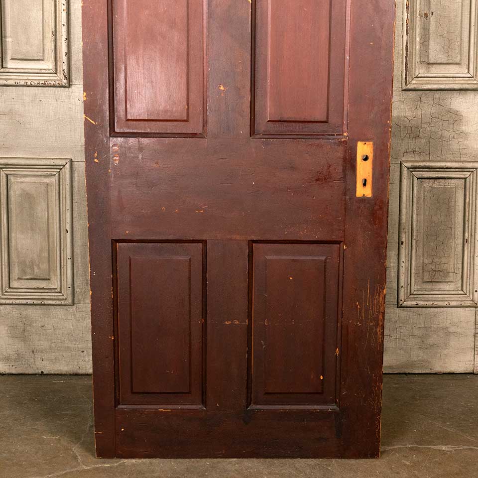 Architectural salvage antique four panel pine wood interior door measuring approx. 29 3/4" wide x 77 1/4" tall x 1 3/8" thick. The door was cut down on the hinged side at some point in its history. See photos to evaluate condition.