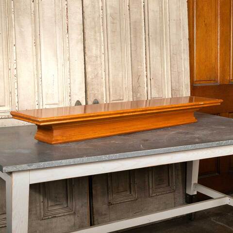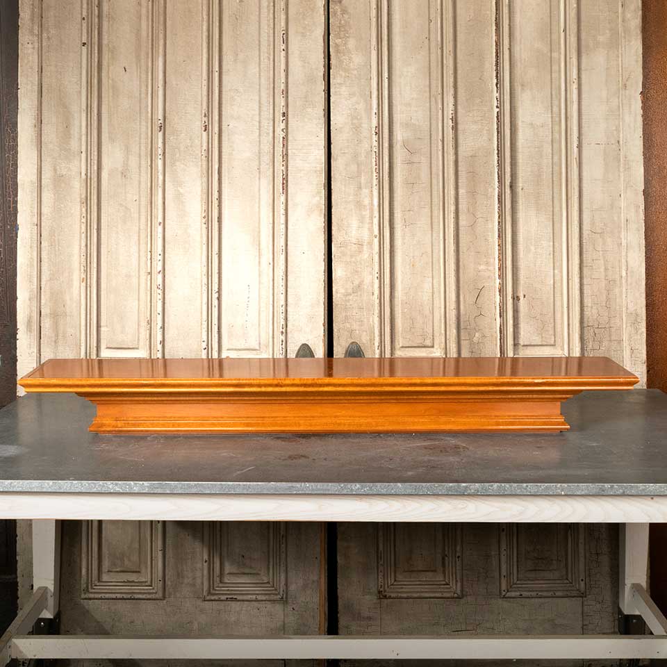 Architectural salvage wood fireplace mantel shelf measuring approx. 56" wide x 6 1/4" tall x 10 1/16" front to back. See photos to evaluate condition.