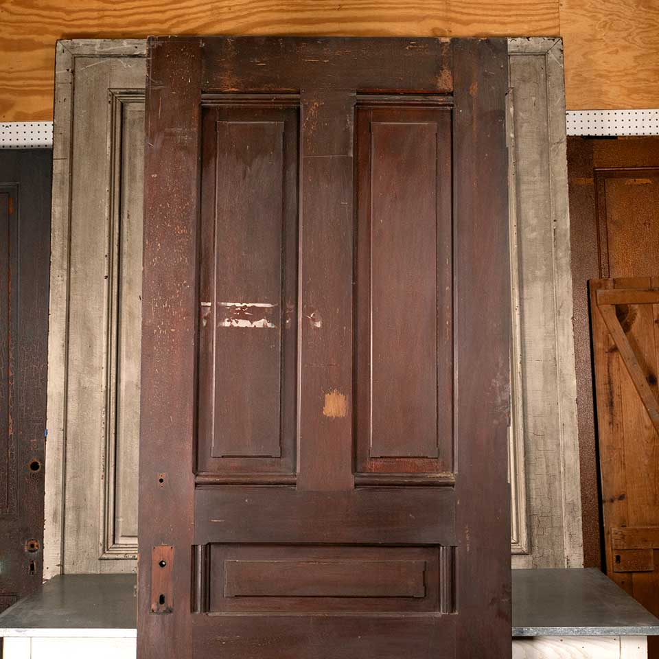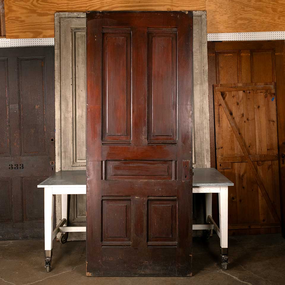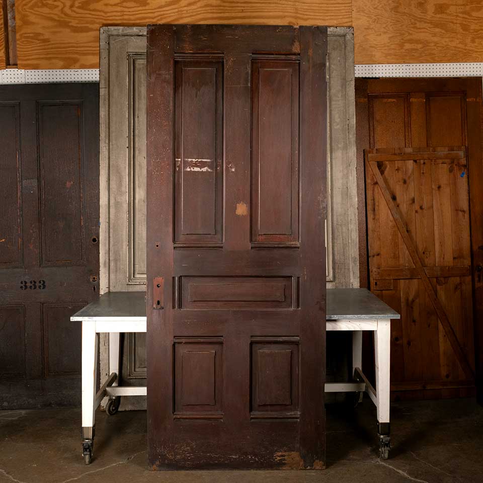 Architectural salvage antique five panel wood interior door measuring approx. 38 3/4" wide x 96" tall x 2" thick. See photos to evaluate condition.