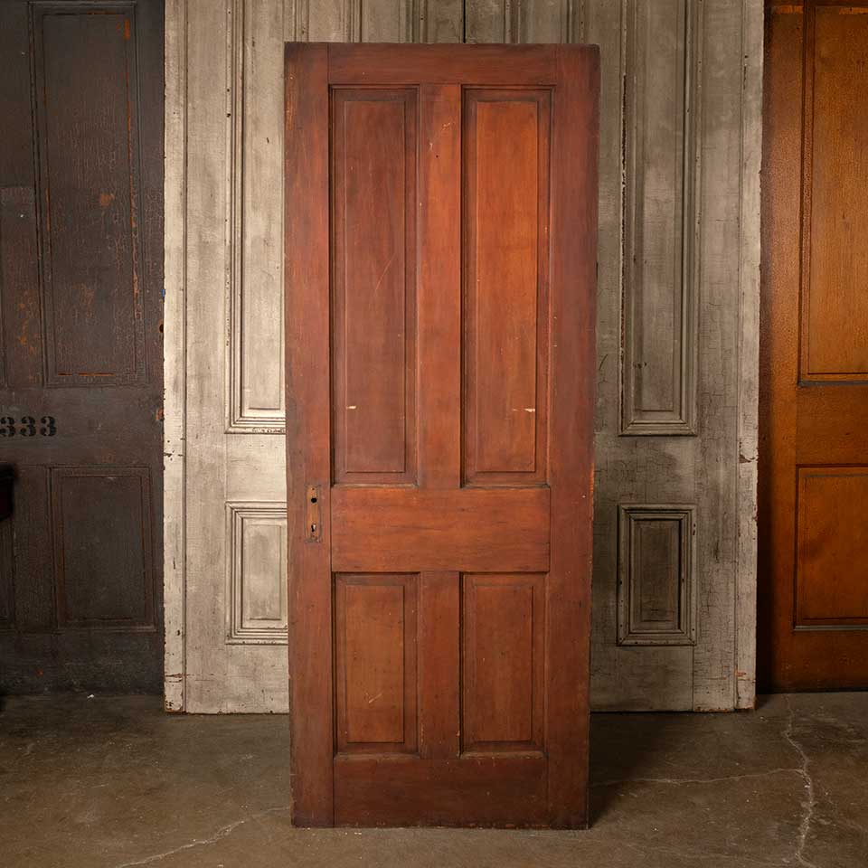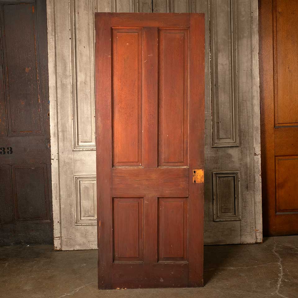 Architectural salvage antique pine wood four panel interior door measuring approx. 29 13/16" wide x 76" tall x 1 3/8" thick. See photos to evaluate condition.