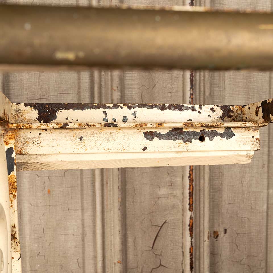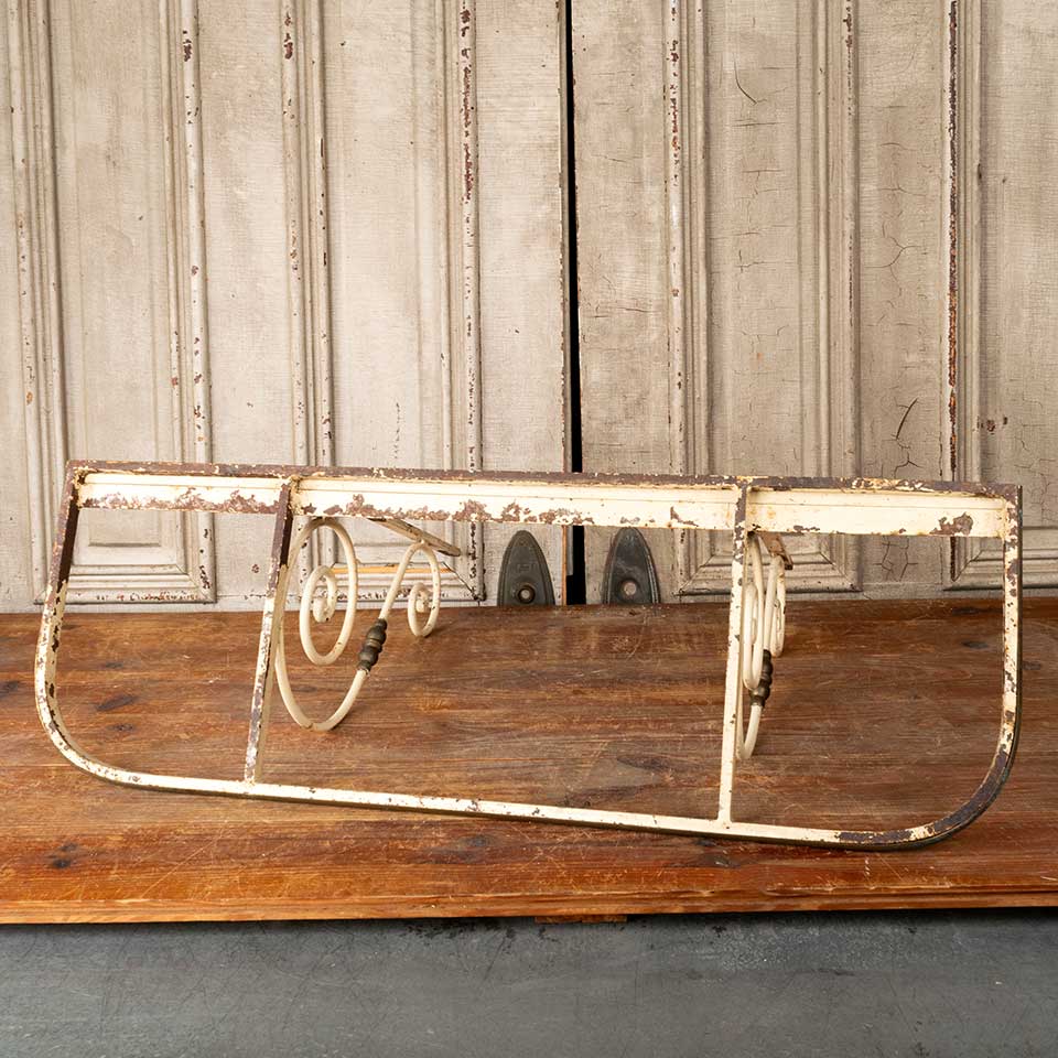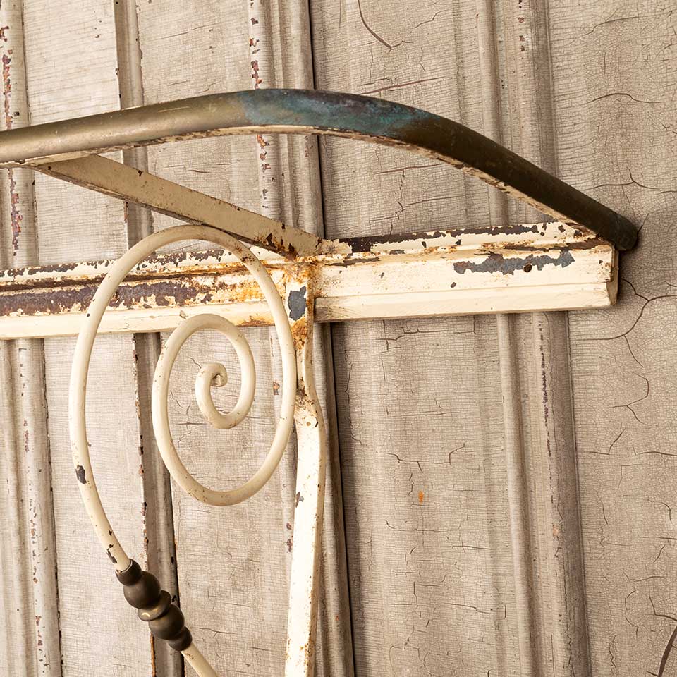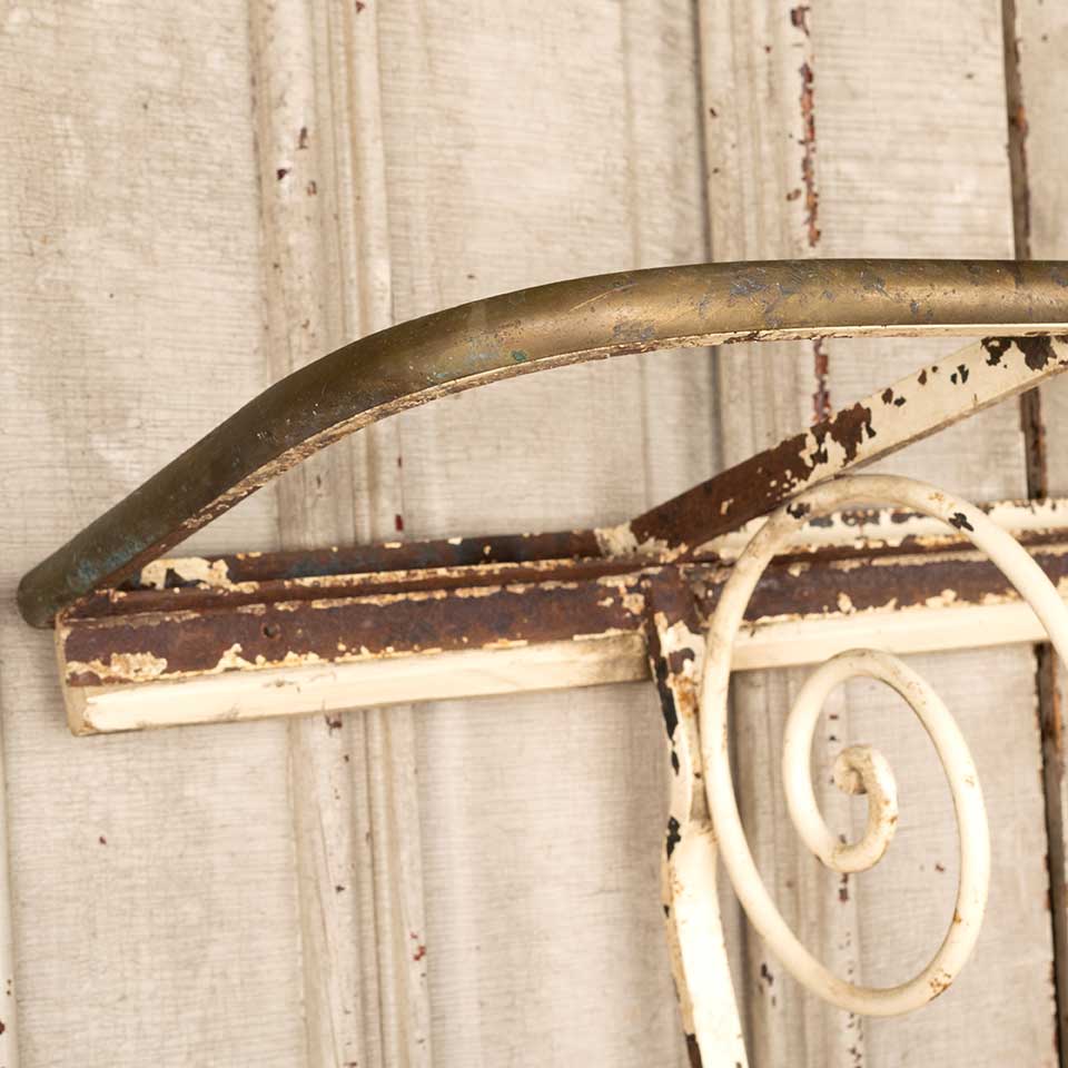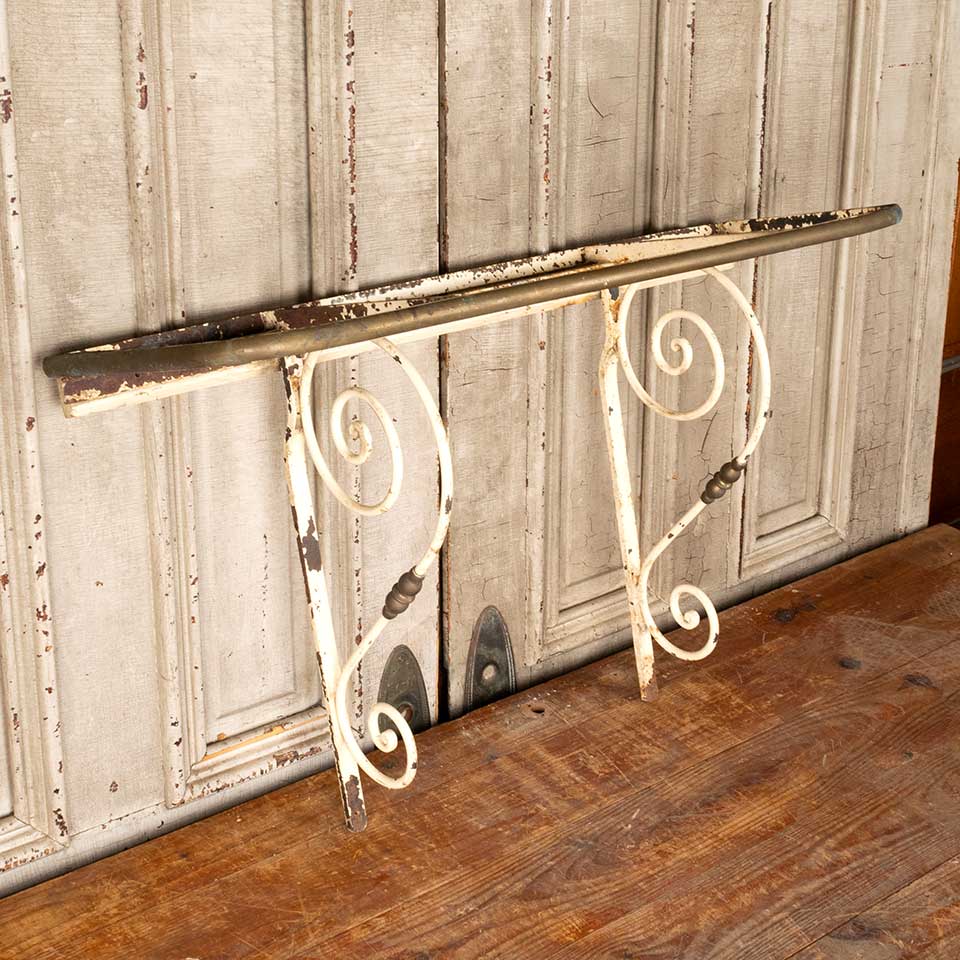 Architectural salvage antique cast iron and brass shelf frame with brackets measuring approx. 36 1/4" wide x 21 1/4" tall x 12 3/8" front to back. There's no shelf on this piece. See photos to evaluate condition.