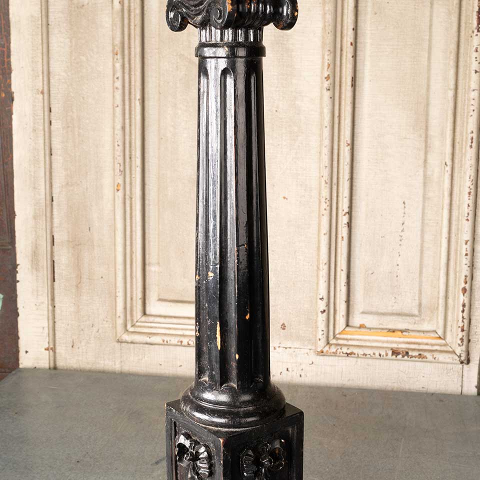 Architectural salvage vintage working painted wood Ionic column table lamp measuring approx. 39" tall (overall) with a 5 1/4" square base. Salvaged lighting should be inspected by a licensed electrician prior to use.