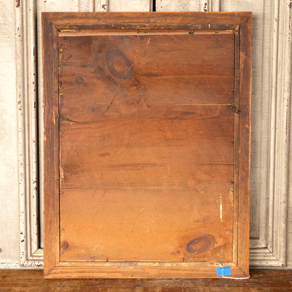 Antique Immaculate Sacred Heart of Mary colored print in oak frame measuring approx. 21 5/8" wide x 27 3/4" tall x 3/4" front to back. See photos to evaluate condition.
