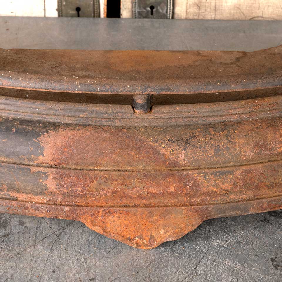 Architectural salvage antique cast iron fireplace fender measuring approx. 28 1/4" wide x 6 1/4" tall x 15 1/2" front to back. See photos to evaluate condition.