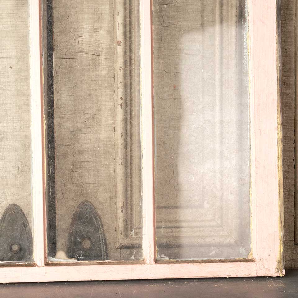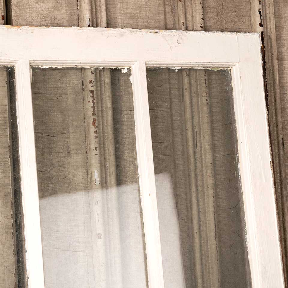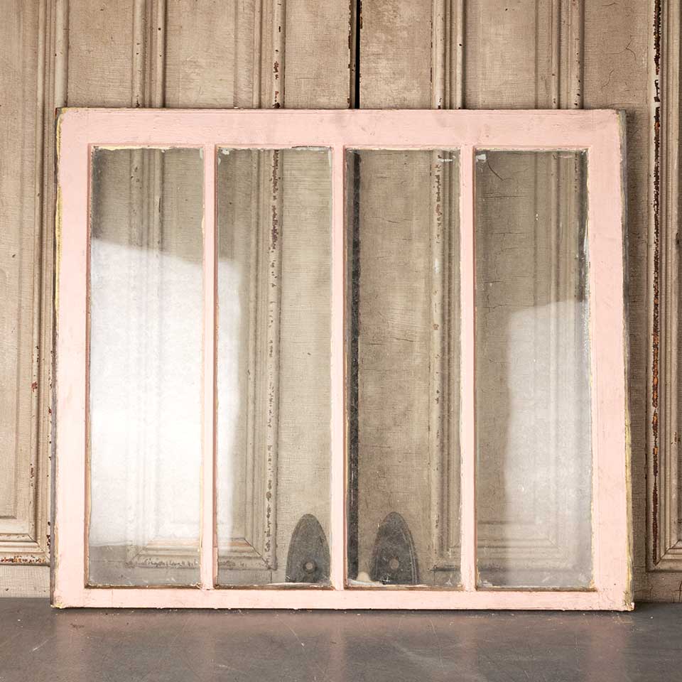 Architectural salvage antique divided four lite wood window sash measuring approx. 36 1/2" wide x 31 1/2" tall x 1 3/8" thick. Color and condition may vary, see photos to evaluate. Priced at $65/each.
