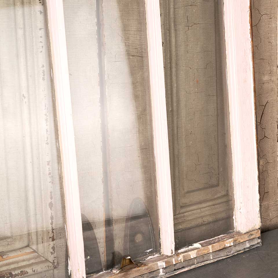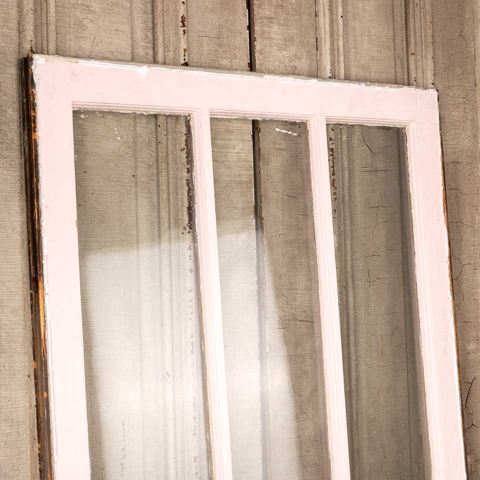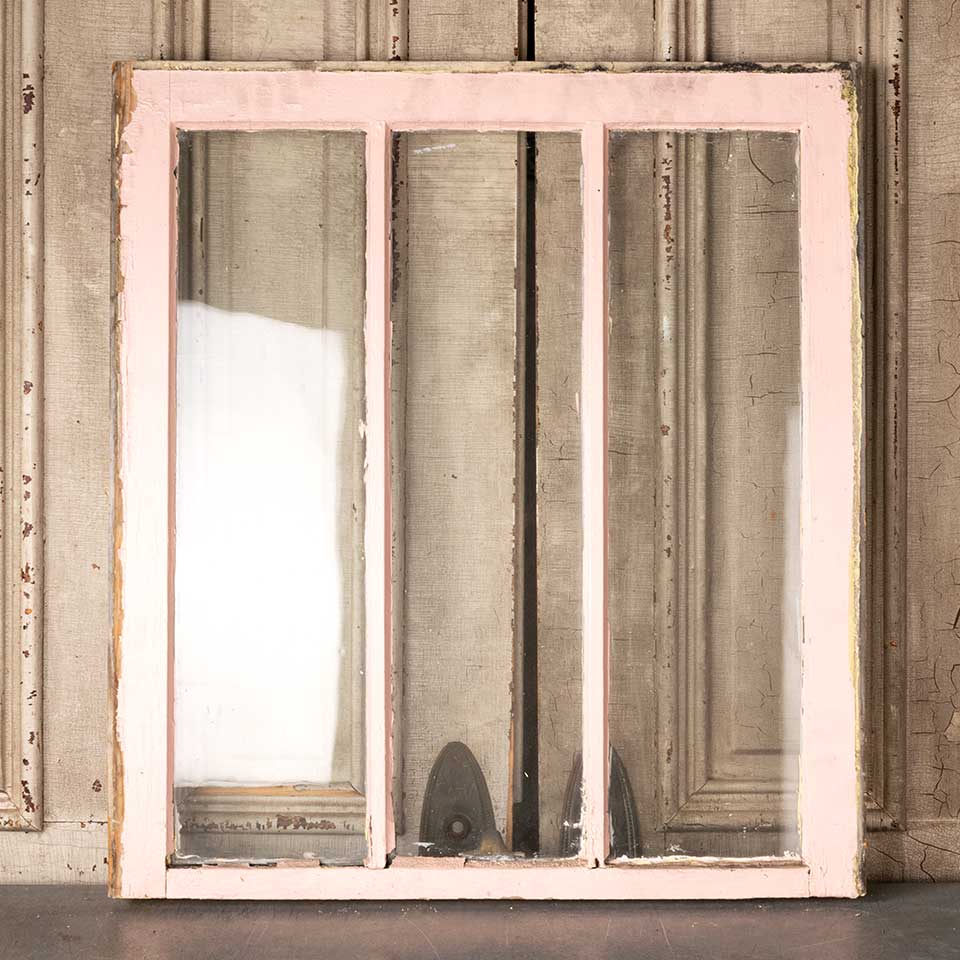 Architectural salvage antique divided three lite wood window sash measuring approx. 28 3/8" wide x 31 1/2" tall x 1 3/8" thick. Color and condition may vary, see photos to evaluate. Priced at $50/each.