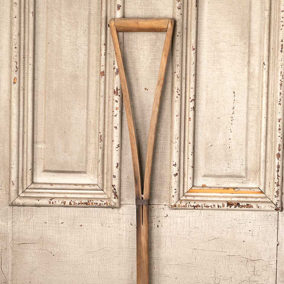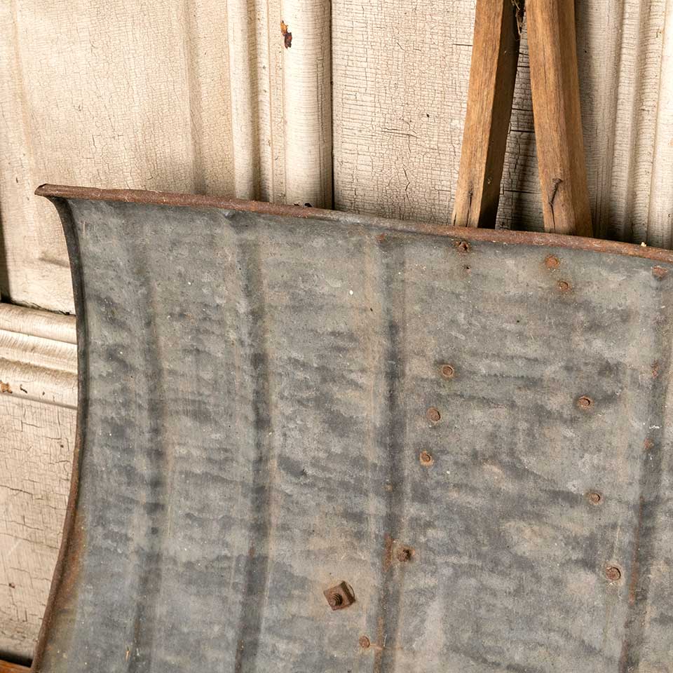 Antique primitive wood and metal snow shovel measuring approx. 20 1/4" wide x 50 1/4" tall x 2" front to back. See photos to evaluate condition.