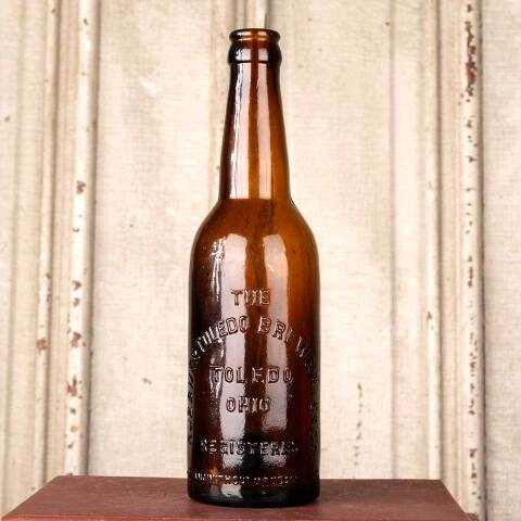 The Huebner Toledo Breweries Co., Toledo, Ohio glass beer bottle measuring approx. 9 1/4" tall x 2 5/8" in diameter overall. See photos to evaluate condition.