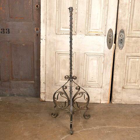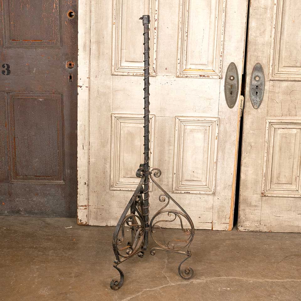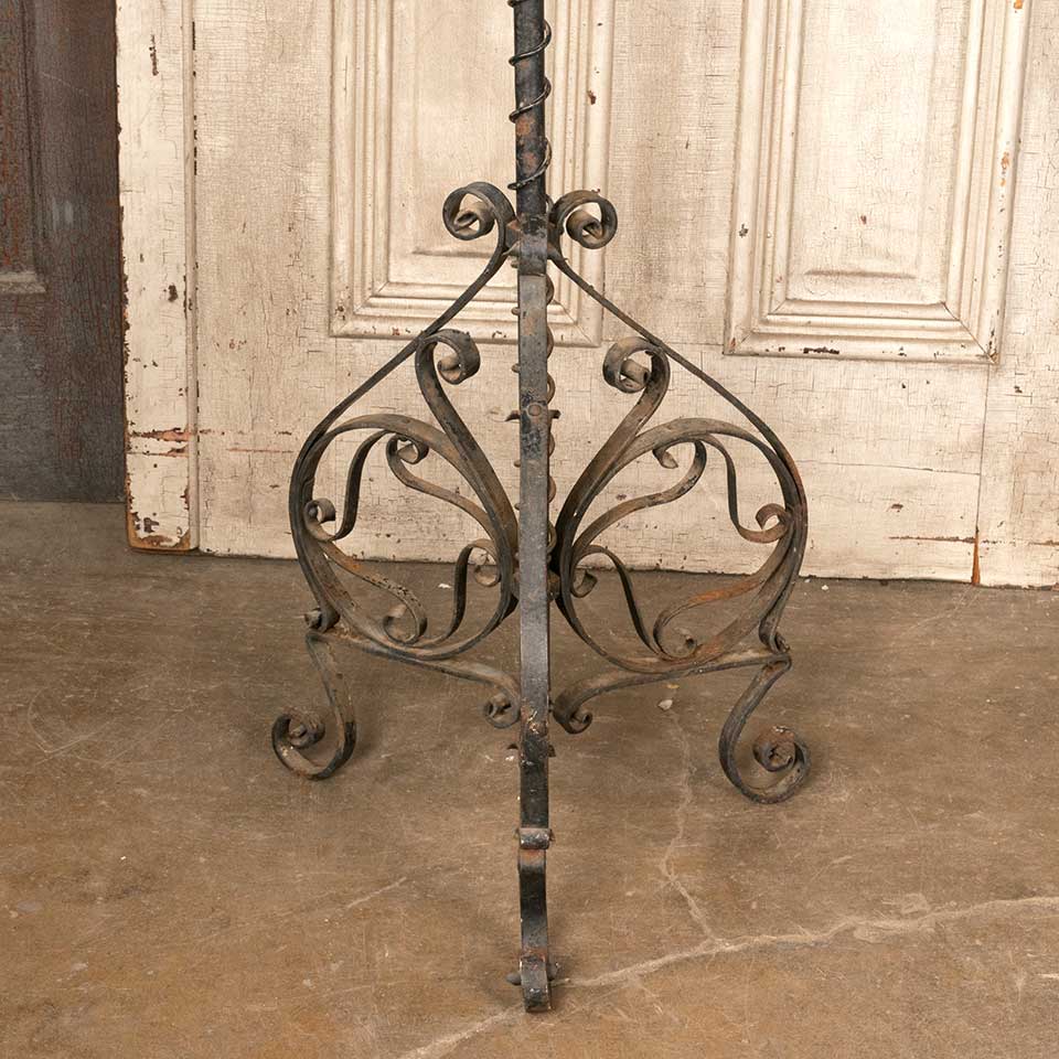 Architectural salvage antique wrought iron stand measuring approx. 49" tall with a 15 1/2" diameter base. See photos to evaluate condition.