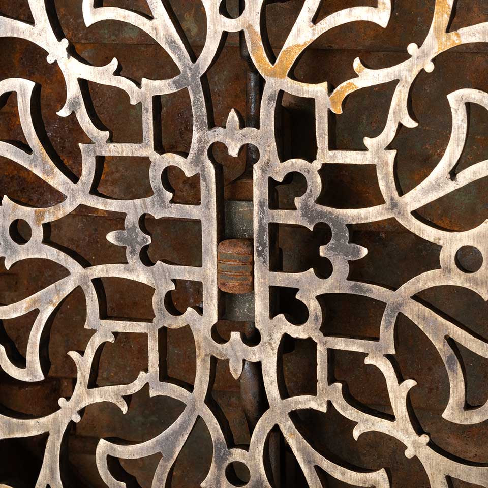 Architectural salvage antique ornate cast iron round heat grate wall / floor vent cover with operable louvers measuring approx. 12" in diameter (insert dimensions) and 13 3/4" in diameter (outside dimensions). Marked on the bottom PATENTED SEPT. 7. 1875. TUTTLE & HAILEY M.F.G. CO. NEW YORK. See photos to evaluate condition.