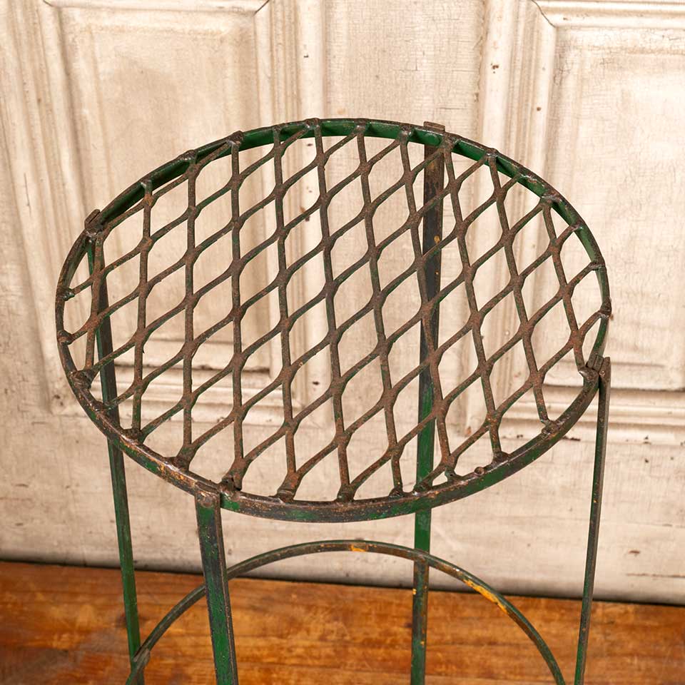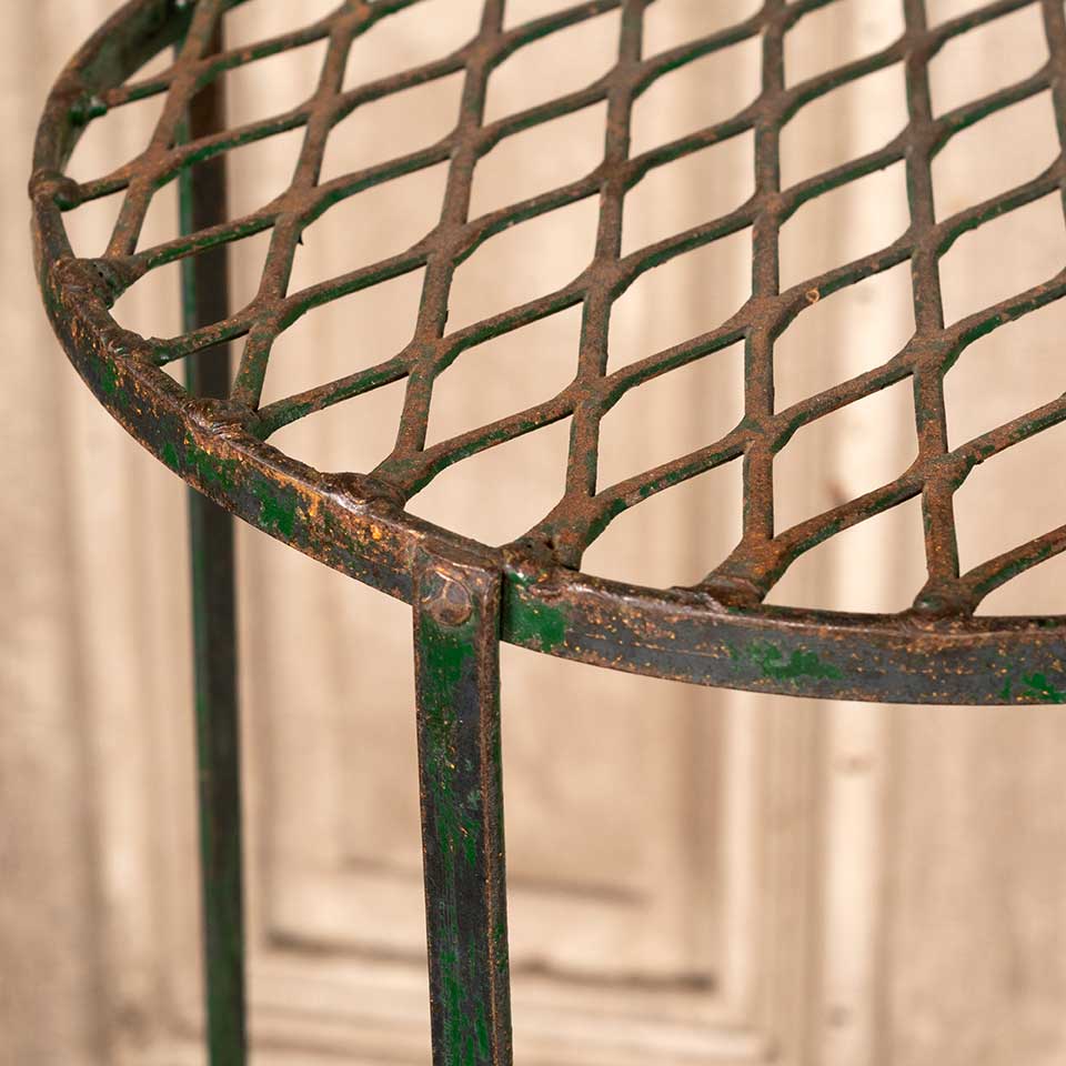 Vintage metal flower pot stand measuring approx. 29 1/4" tall with a 9 3/8" diameter top and a 13 3/4" diameter base. See photos to evaluate condition.