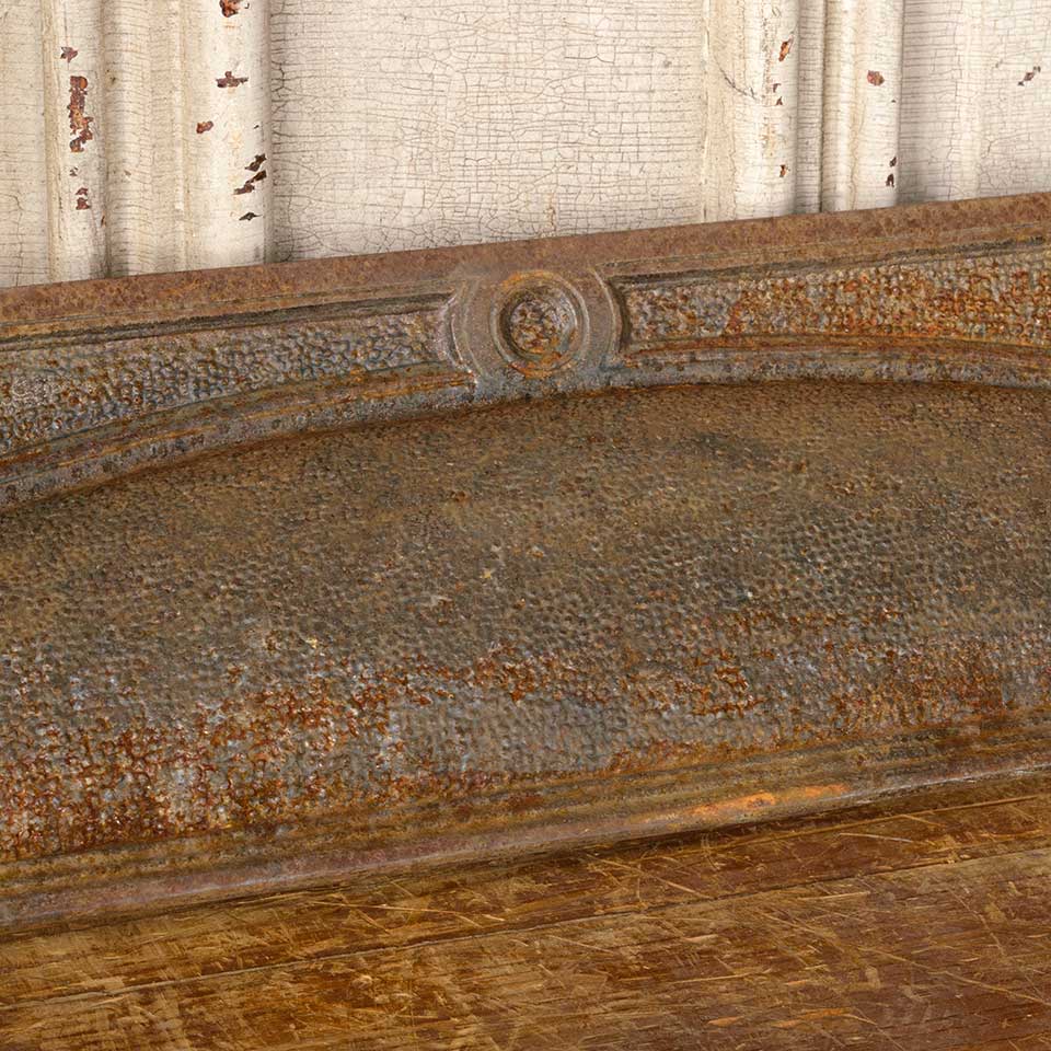 Architectural salvage antique cast iron fireplace surround hood measuring approx. 24 5/8" wide x 5 3/8" tall x 3 1/2" front to back. See photos to evaluate condition.