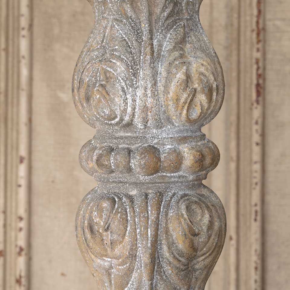 Architectural salvage antique ornamental metal remnant measuring 4 1/2" in diameter x 12" tall with a 2" diameter opening on both ends. See photos to evaluate condition.