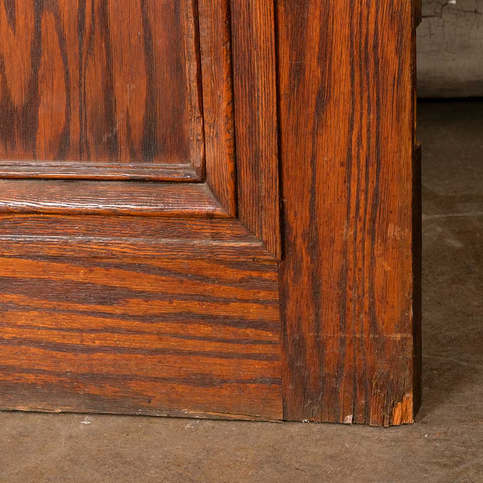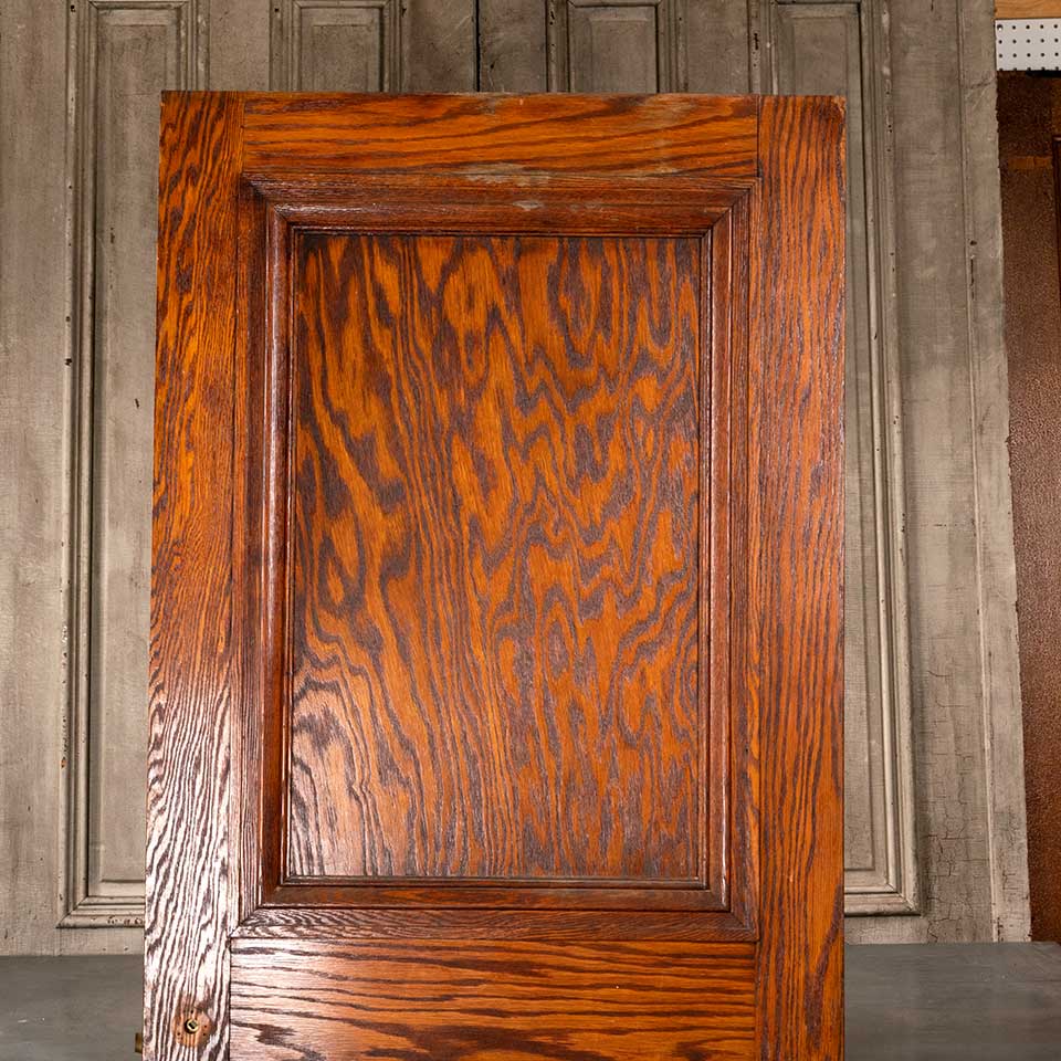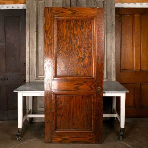 Architectural salvage antique interior two panel oak door with mortise lock measuring approx. 35 3/4" wide x 83 3/8" tall x 1 3/4" thick. There's some veneer damage along the bottom. See photos to evaluate condition.