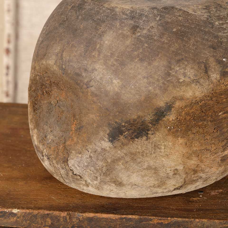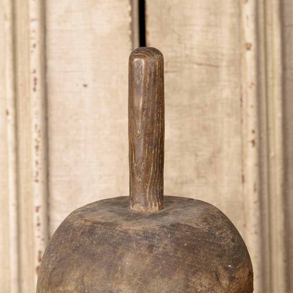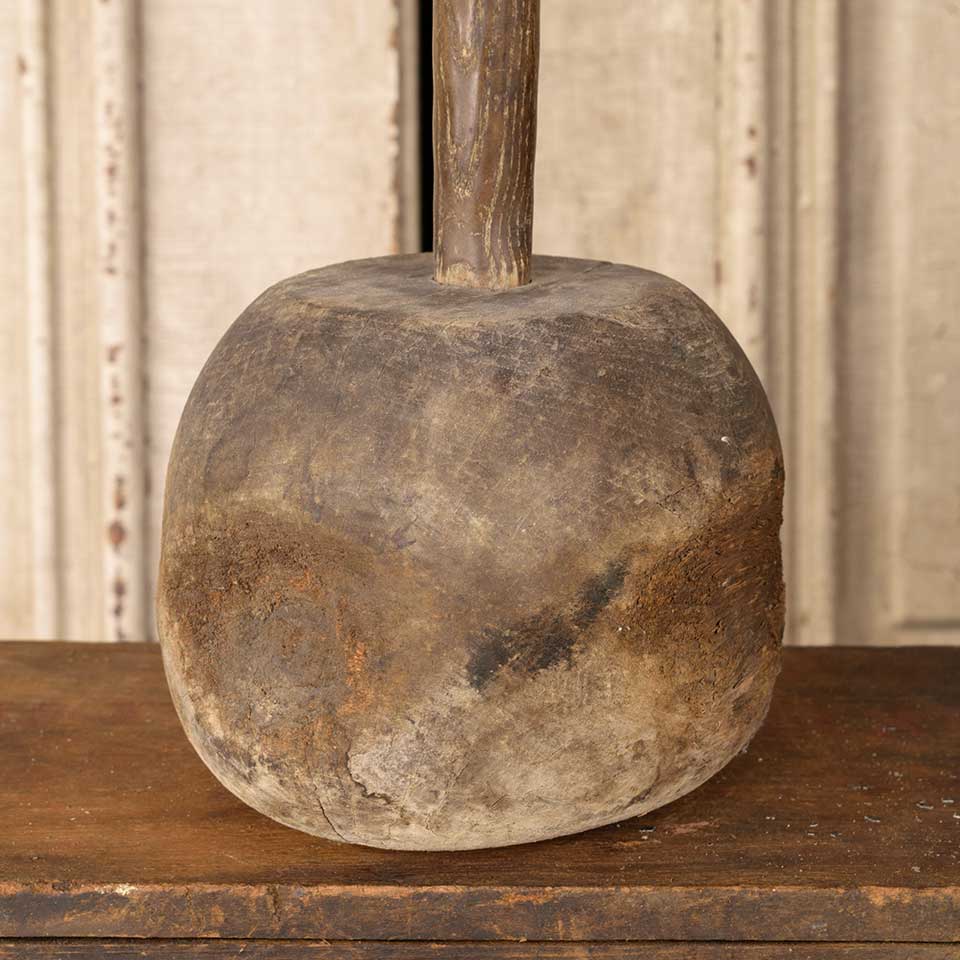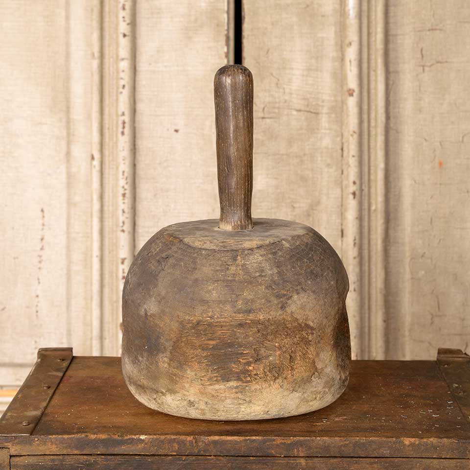 Antique primitive wood mallet measuring approx. 6 1/2" in diameter x 5" tall with a 4 1/2" long handle. See photos to evaluate condition.