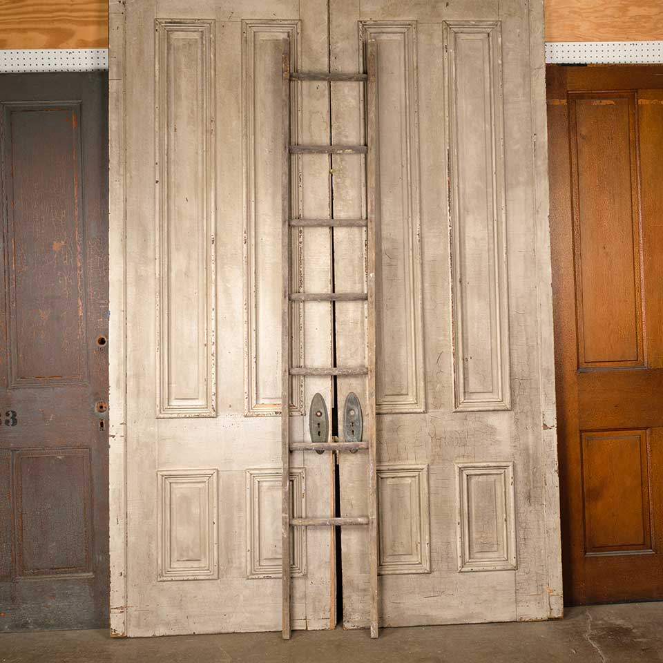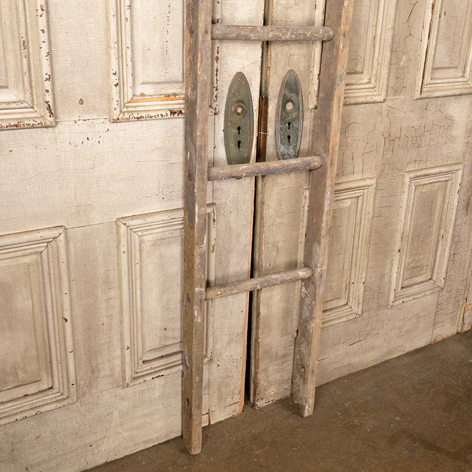 Architectural salvage antique primitive seven rung wood ladder measuring approx. 15" wide x 96" tall x 2 1/2" front to back. The bottom rung is missing. See photos to evaluate condition. This ladder is being sold for decorative use only.