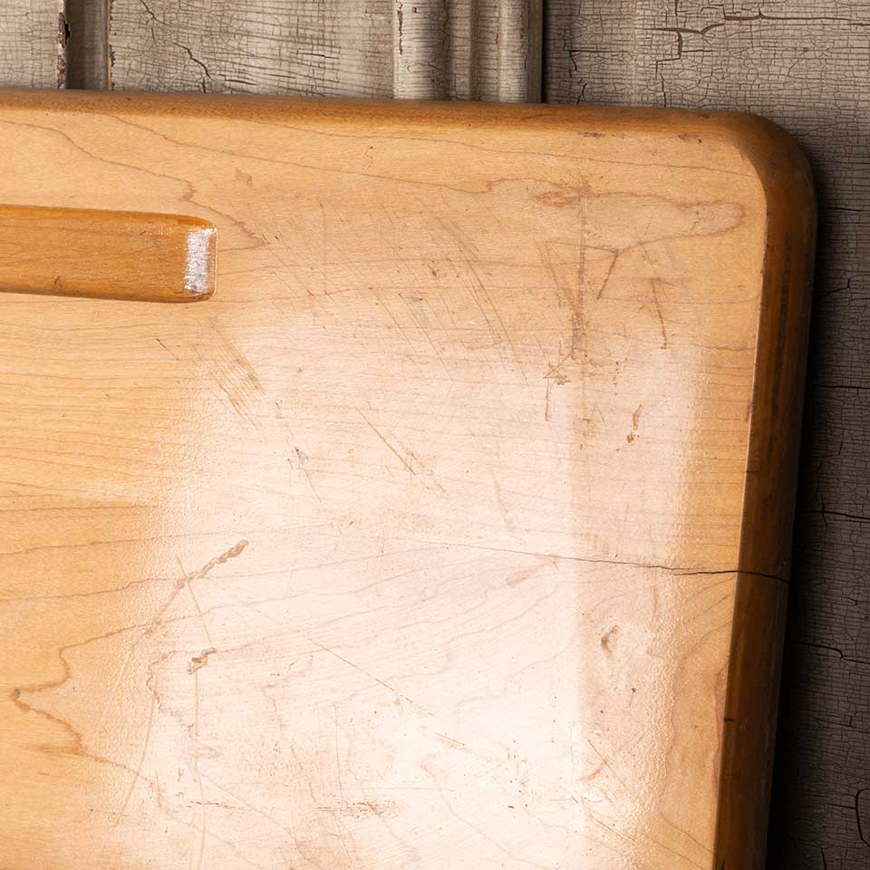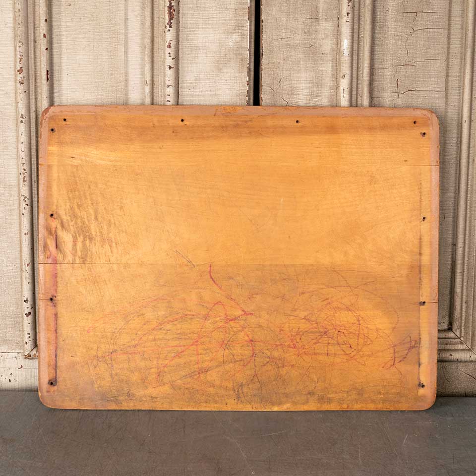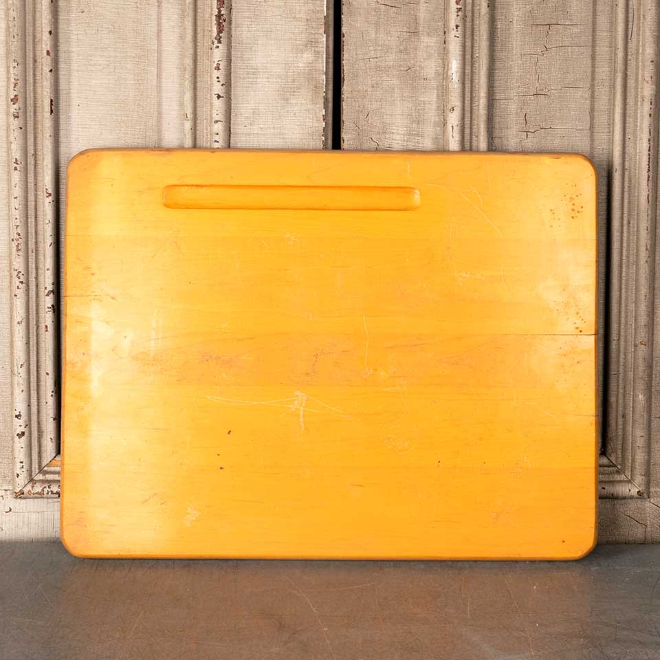 Salvaged vintage solid wood school desk top measuring approx. 24" x 18 1/4" x 3/4" thick. Color, condition and size may vary. Priced at $15/each.
