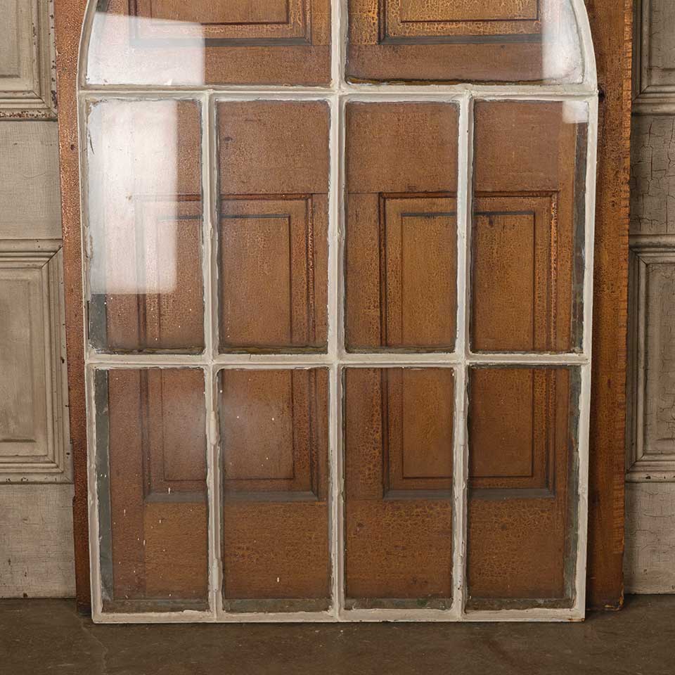 Architectural salvage antique arched top divided lite steel window measuring approx. 34 1/2" wide x 55 3/8" tall x 1 1/4" front to back. See photos to evaluate condition.