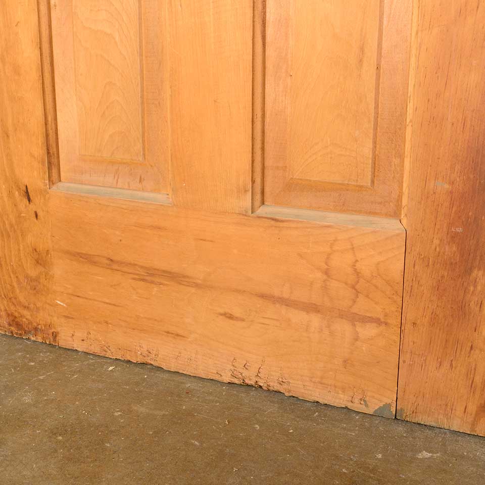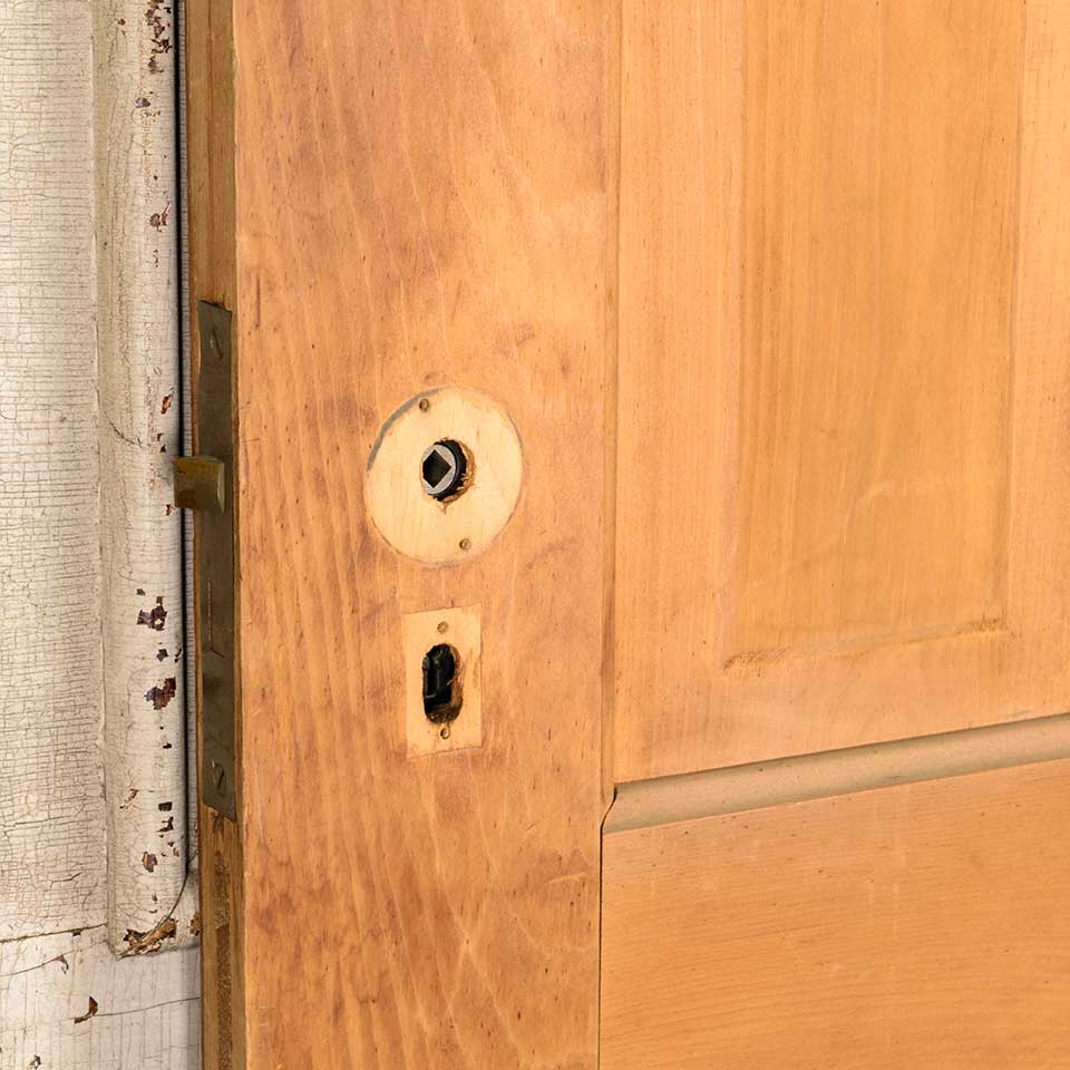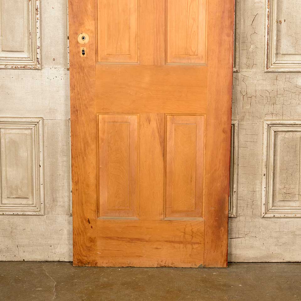 Architectural salvage antique pine wood four panel interior door with mortise lock measuring approx. 27 7/8" wide x 76 1/2" tall x 1 3/8" thick. See photos to evaluate condition.