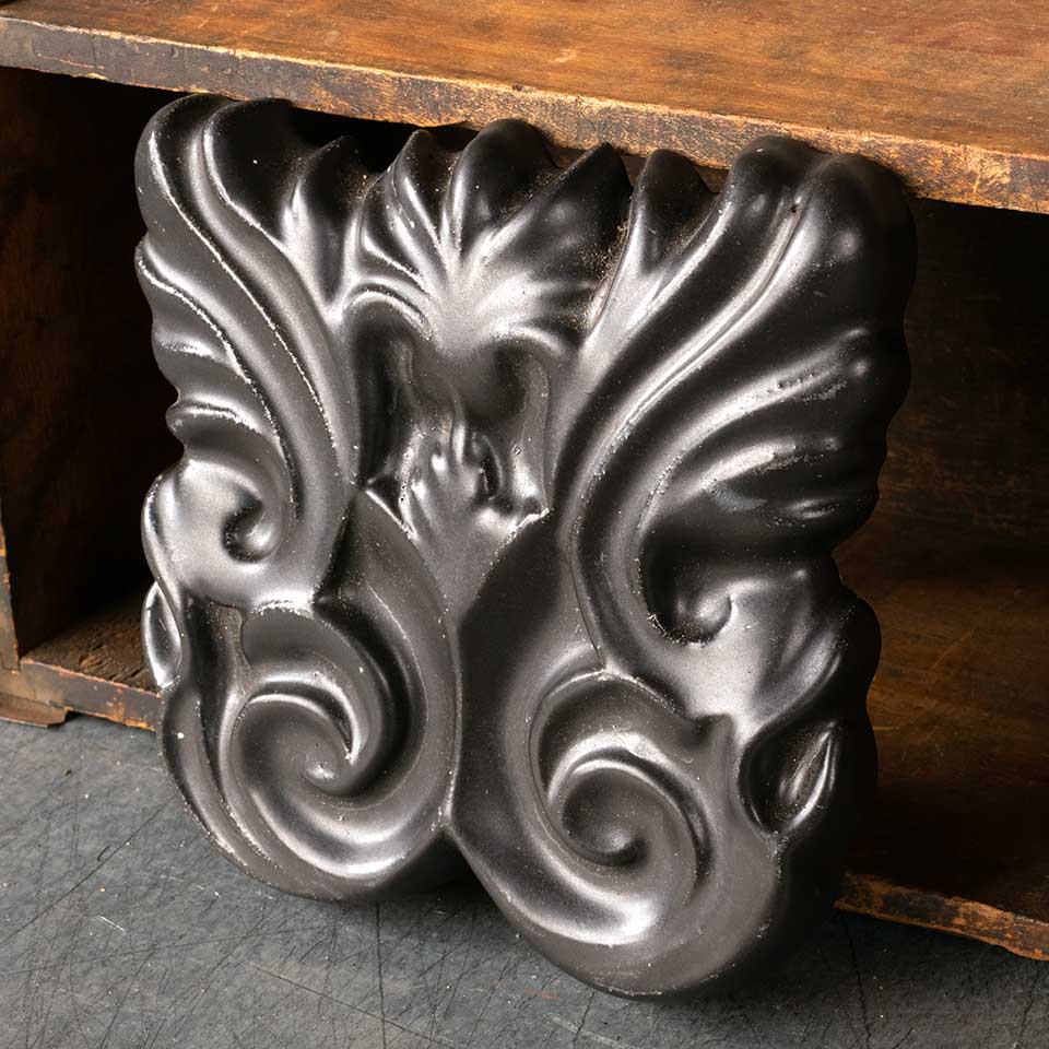 Vintage cast plaster decorative ornament measuring approx. 7 3/4" wide x 8" tall x 1" front to back. Color and condition may vary.