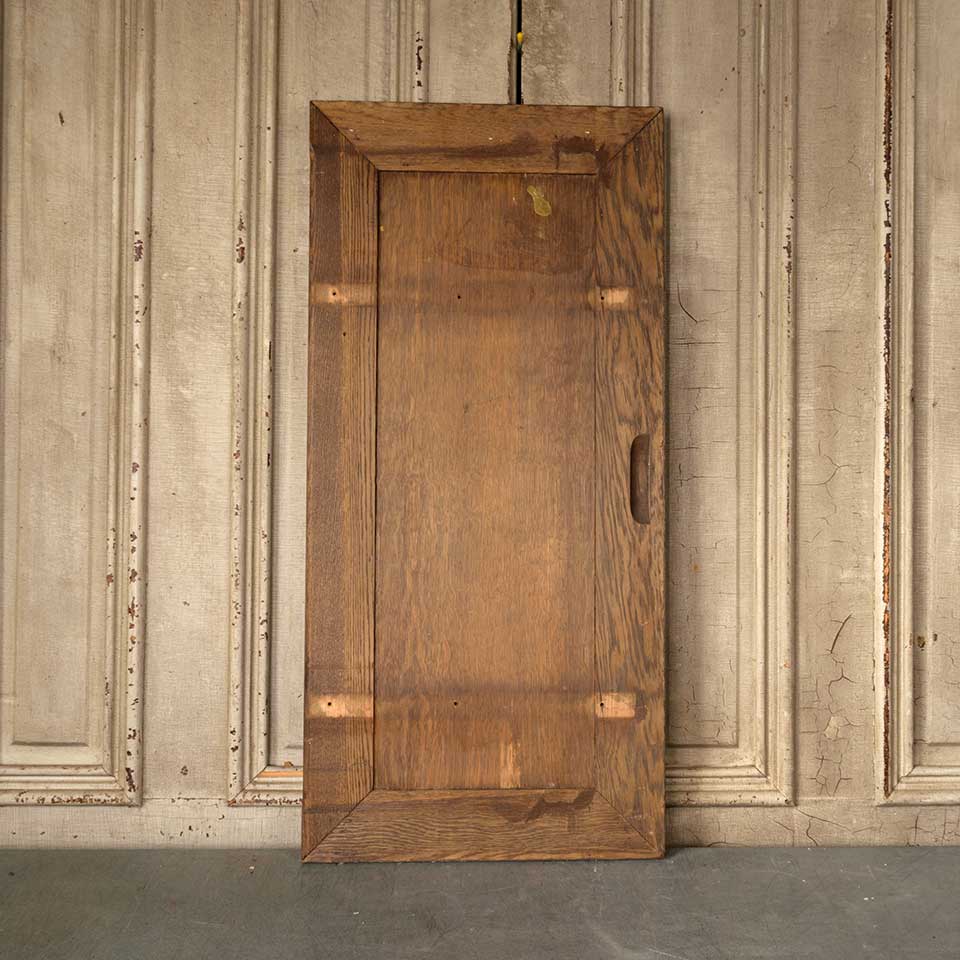 Architectural salvage antique quarter sawn oak panel measuring approx. 38 1/8" x 18" x 1" front to back. Color and condition may vary. Priced at $75/each.