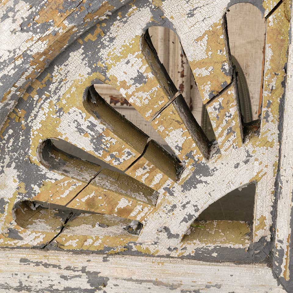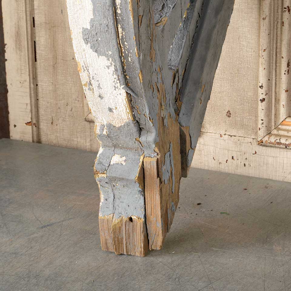 Architectural salvage antique painted wood Victorian corbel house bracket with sunburst design measuring approx. 3 1/2" wide x 22" tall x 18" front to back. There's some wood loss. See photos to evaluate condition.