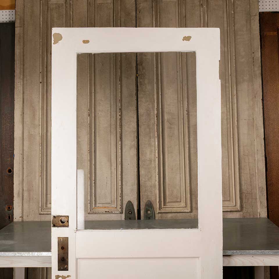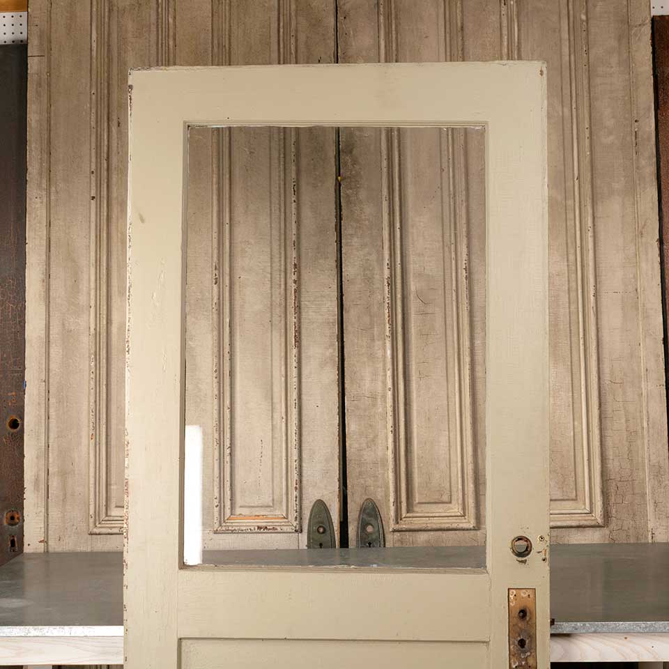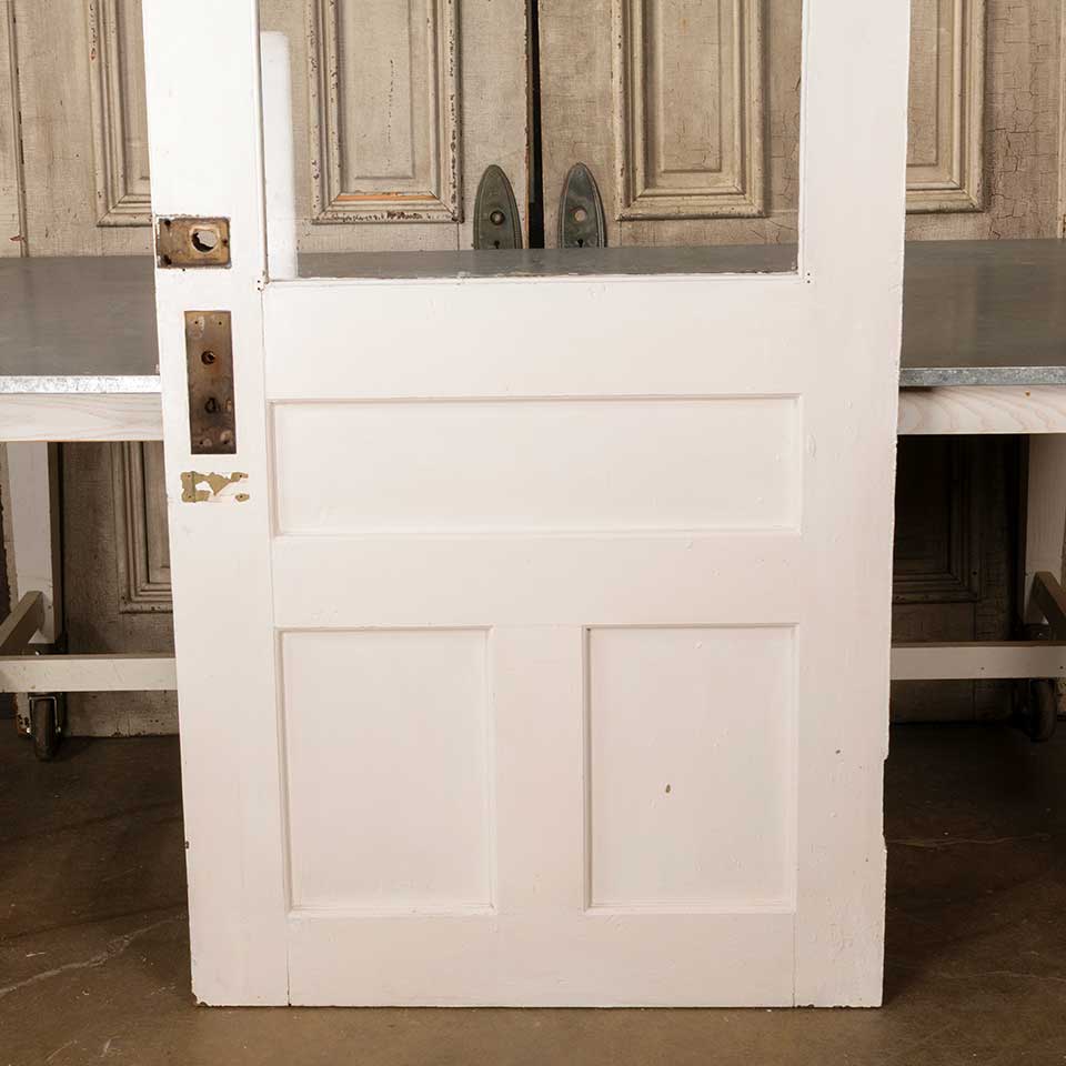 Architectural salvage antique painted wood half-lite entry door measuring approx. 35 5/8" wide x 80 3/8" tall x 1 3/4" thick. See photos to evaluate condition.