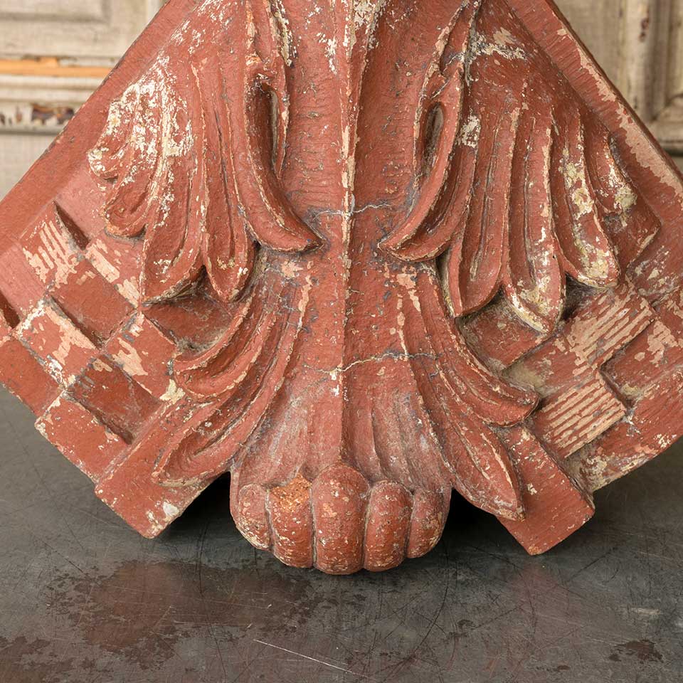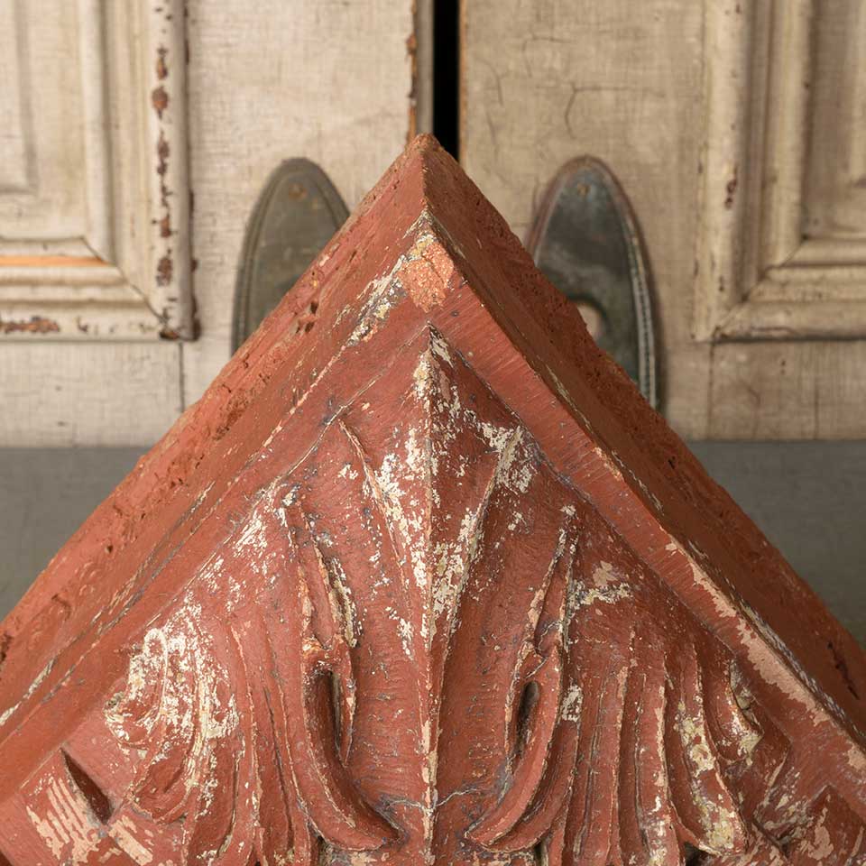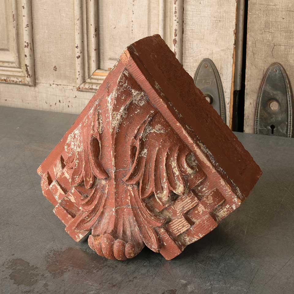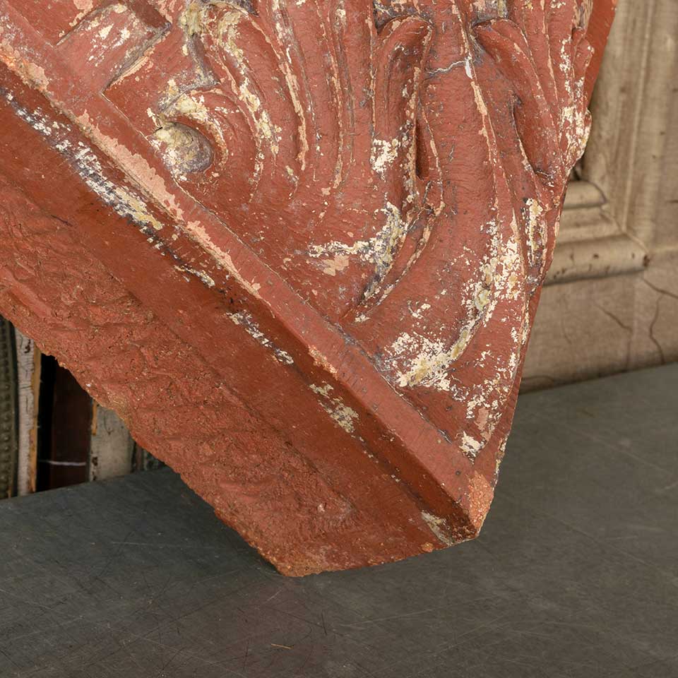 Architectural salvage antique terra cotta building ornament measuring approx. 12 1/2" wide x 11 1/4" tall x 8" front to back. See photos to evaluate condition.