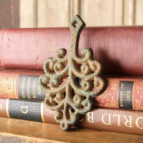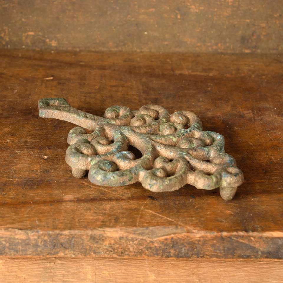 Antique cast brass trivet measuring approximately 2 3/4" wide x 3 1/4 "tall x 4 1/4 " long. See photos to evaluate condition.