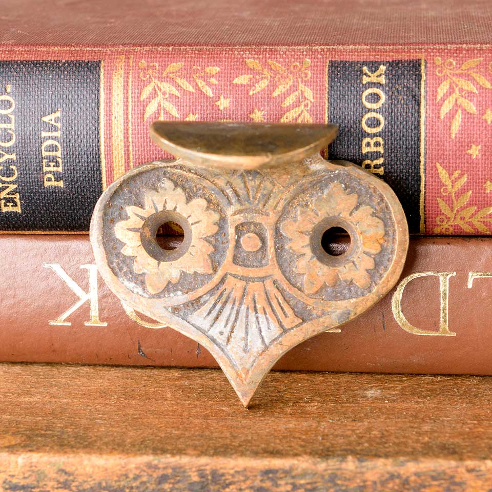 Architectural salvage antique ornate solid bronze window sash finger lift hardware measuring approx. 1 3/4" wide x 1 1/2" tall x 1" front to back. Color and condition may vary.