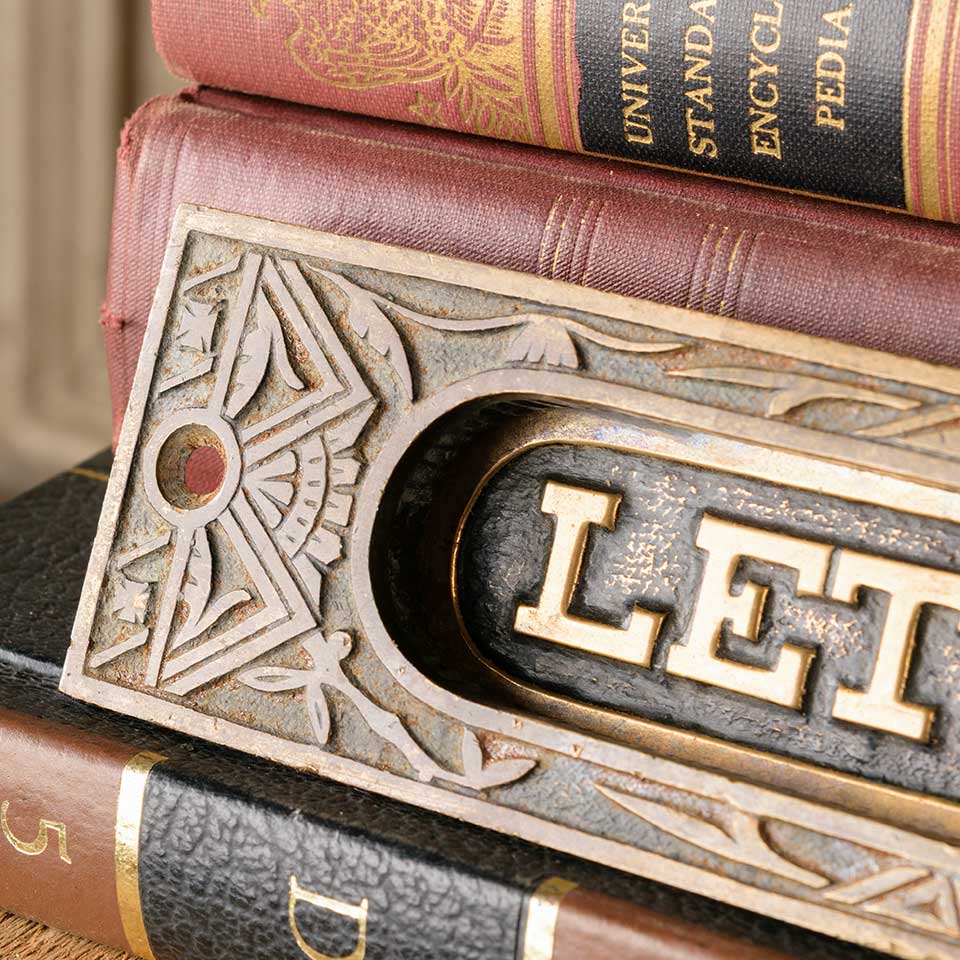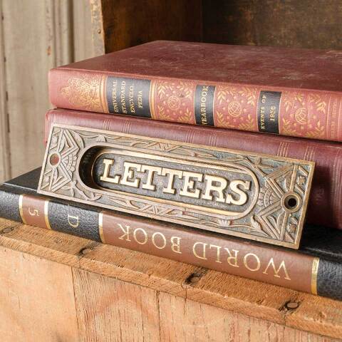 Architectural salvage ornate antique brass Victorian LETTERS door mail slot hardware with spring loaded slot cover measuring approx. 7 1/8" wide x 1 7/8" tall x 1/2" front to back. The mail slot opening measures approx. 4 3/4” wide x 1 1/8” tall. See photos to evaluate condition.