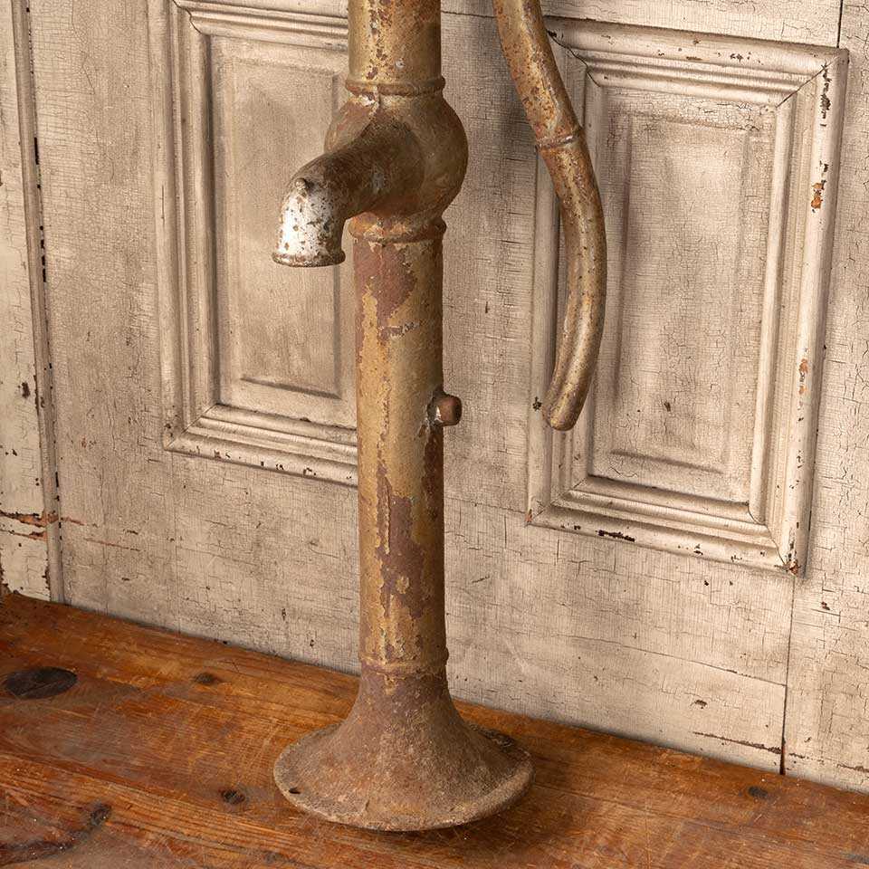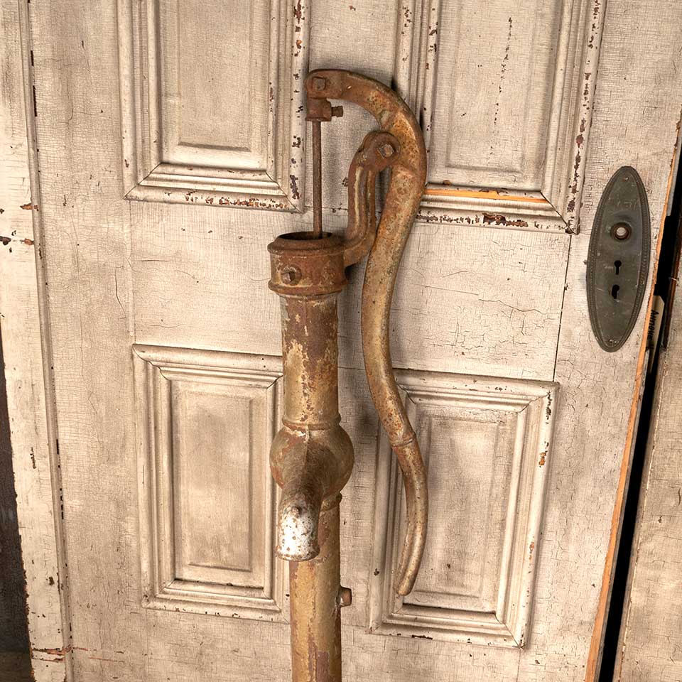 Architectural salvage antique cast iron farm water pump measuring approx. 12" wide x 41" tall x 12" front to back with an 8 3/4" diameter base. See photos to evaluate condition.