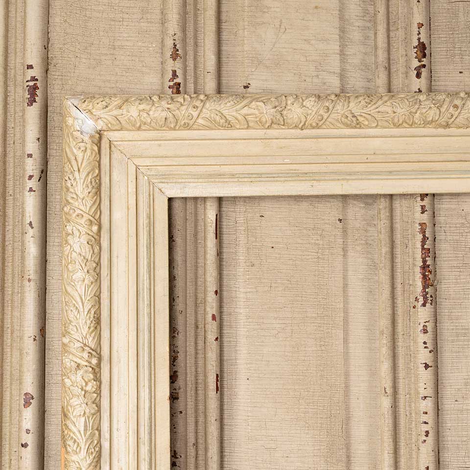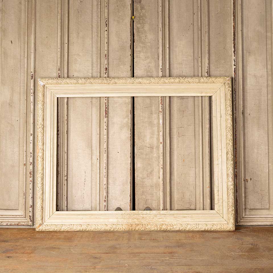 Antique white gesso and wood picture frame measuring approx. 36 5/8" wide x 28 3/4" tall x 1 3/4" front to back with a 30" x 22" opening. There's some material loss on the border. See photos to evaluate condition.