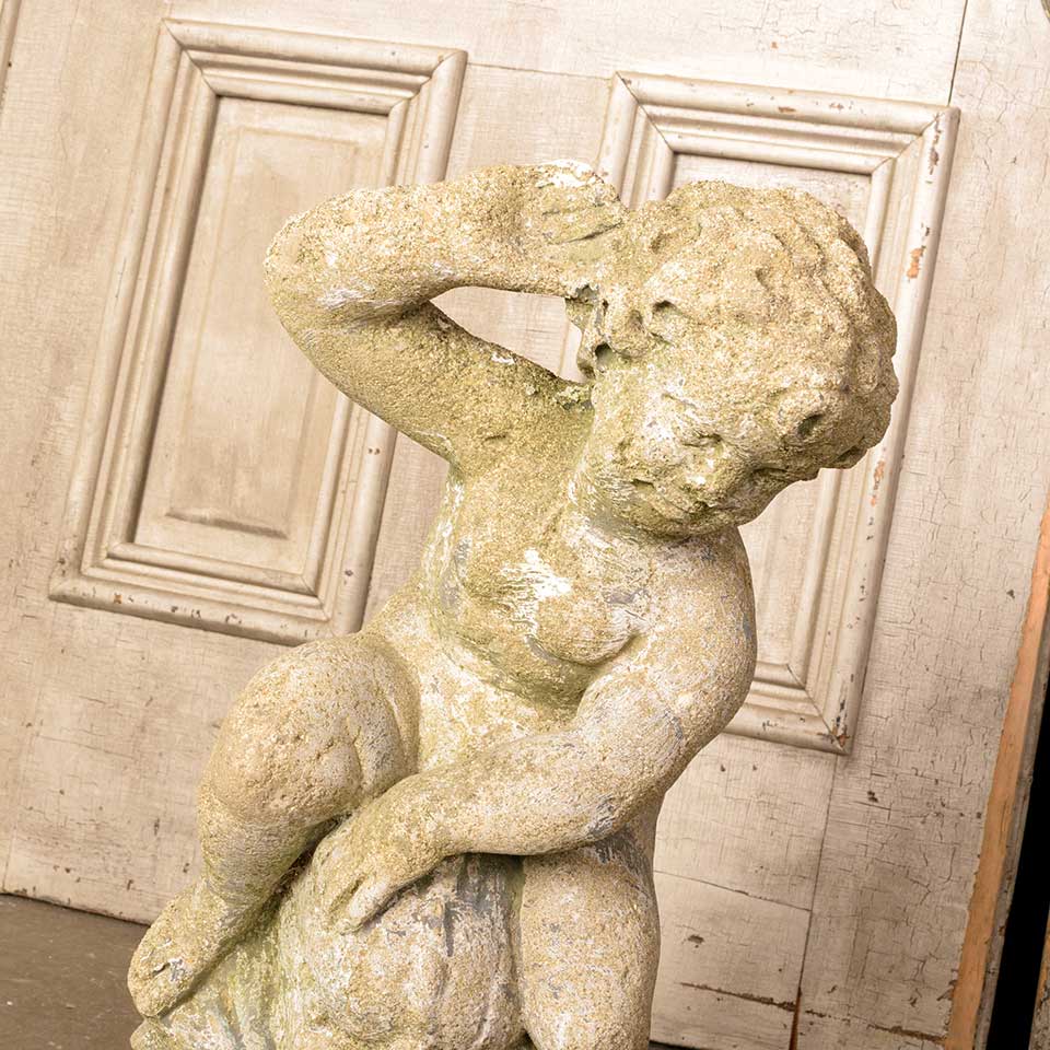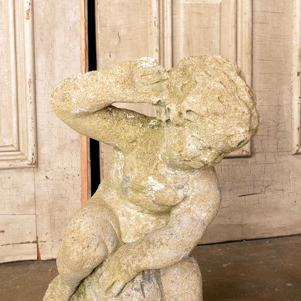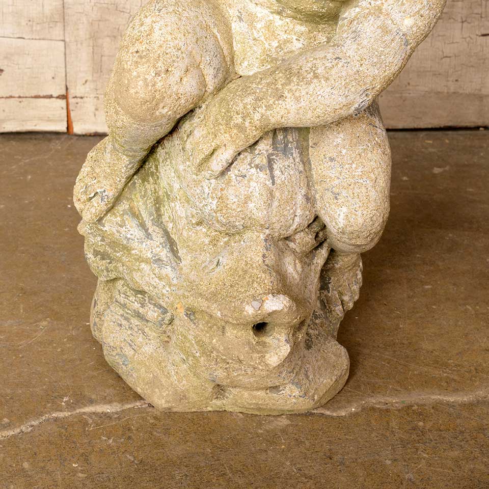 Architectural salvage vintage cast concrete garden fountain statue measuring approx. 9 1/2" wide x 21" tall x 11" front to back. See photos to evaluate condition.