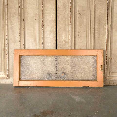 Architectural salvage antique painted wood transom window with Florentine pressed privacy glass measuring approx. 34 1/4" wide x 14" tall x 1 3/4" thick. See photos to evaluate condition.