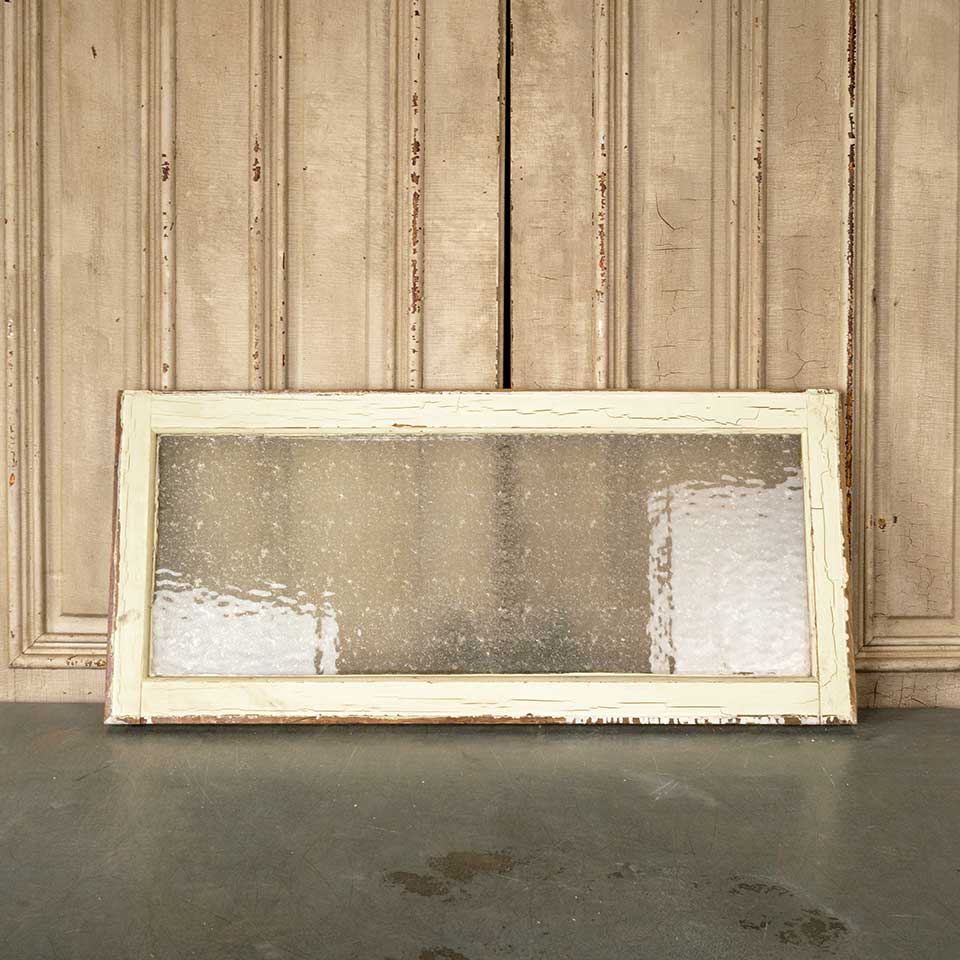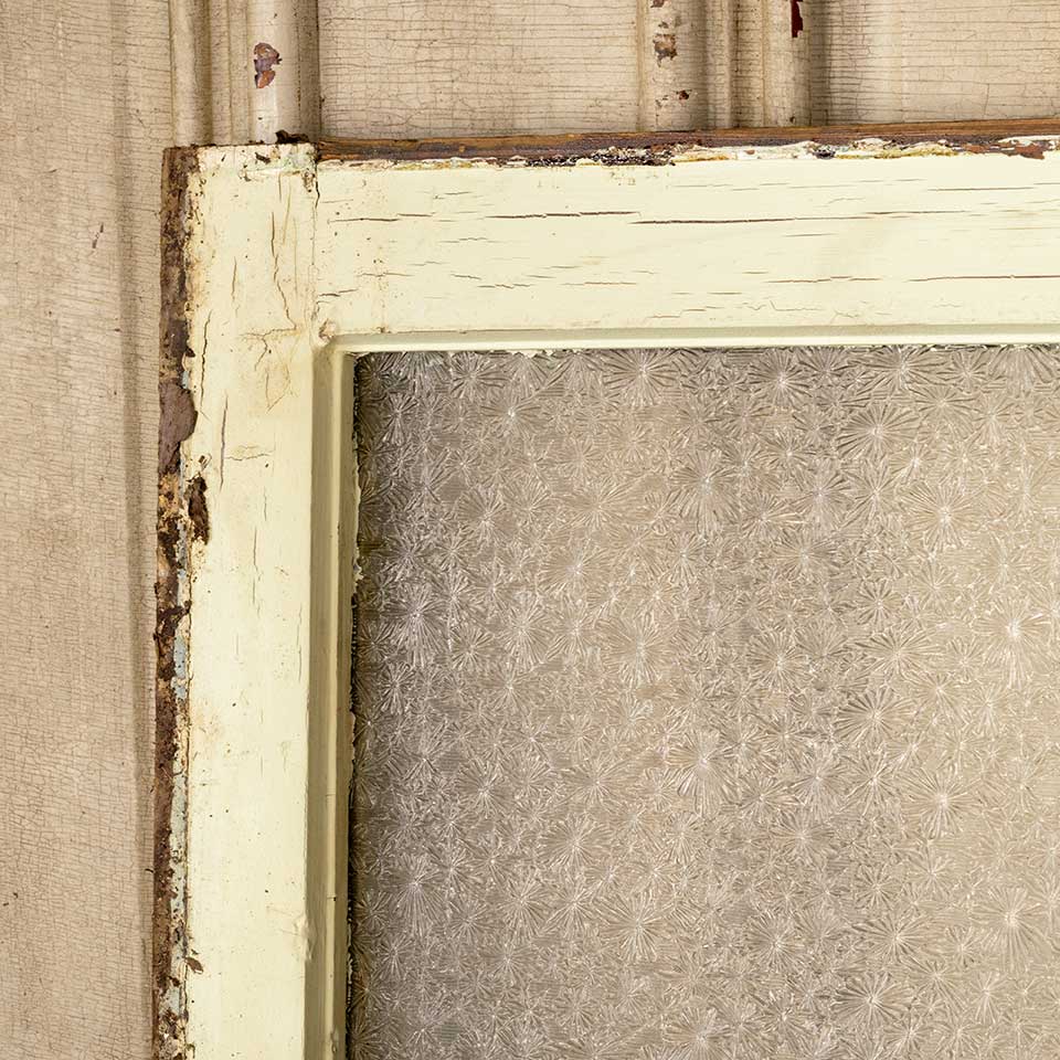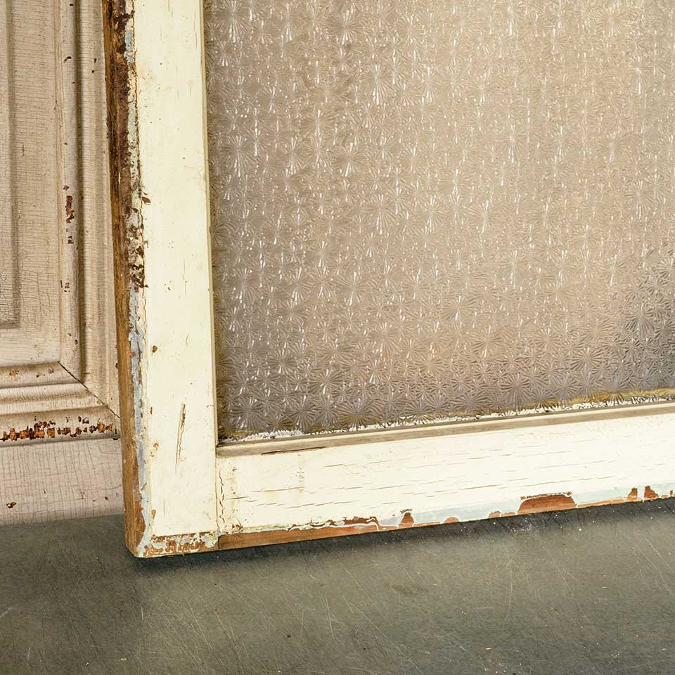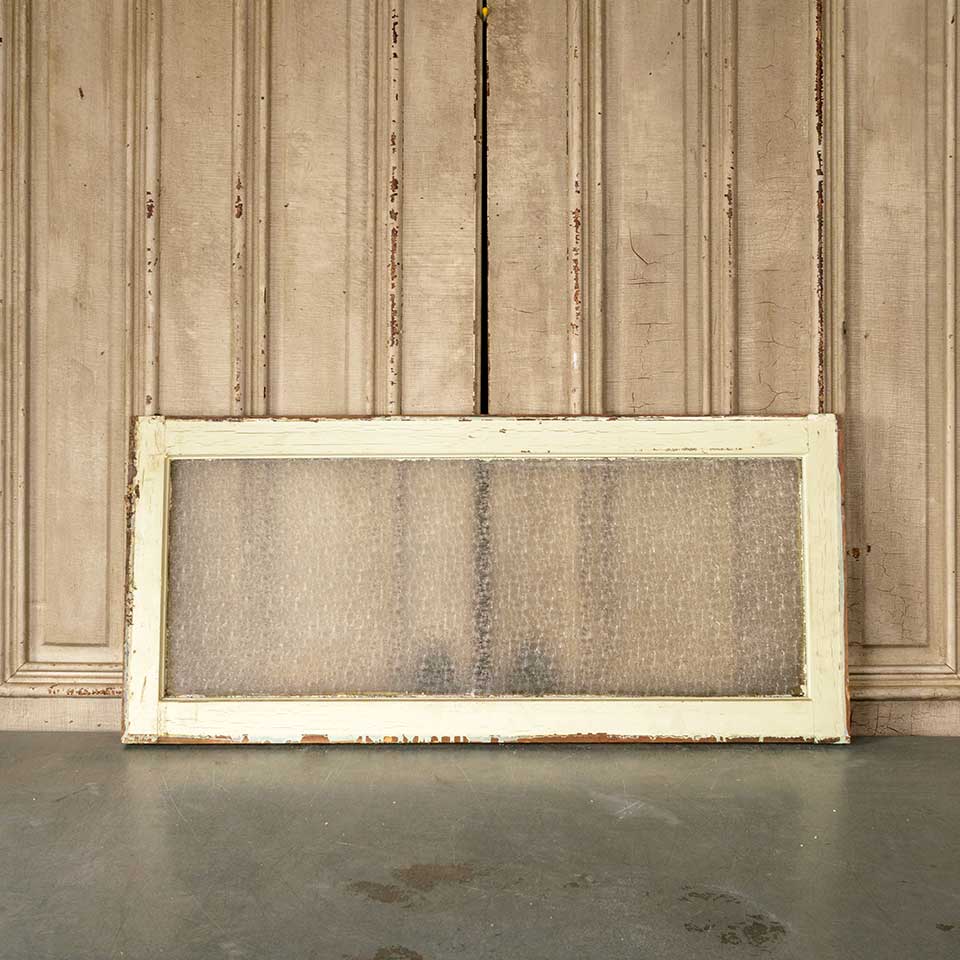 Architectural salvage antique painted wood transom window with Florentine pressed privacy glass measuring approx. 41" wide x 18 1/2" tall x 1 3/8" thick. See photos to evaluate condition.