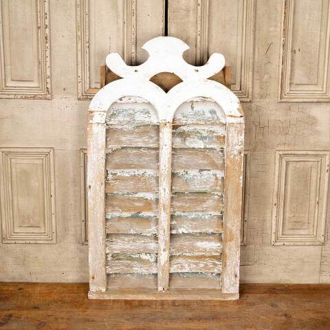 Architectural salvage antique Victorian wood louvered barn vent measuring approx. 26 1/8" wide x 44 1/2" tall x 5" front to back. See photos to evaluate condition.
