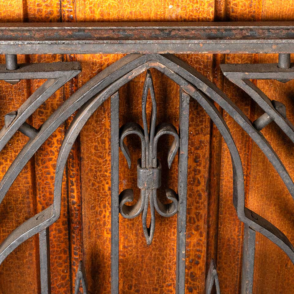 Architectural salvage antique painted cast iron Gothic church altar gate measuring approx. 28 1/4" wide x 23 1/4" tall x 1 1/2" front to back. See photos to evaluate condition.