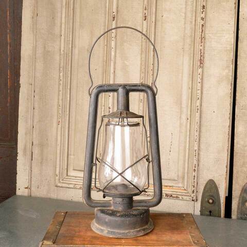 Antique DIETZ HY-LO kerosene lamp measuring approx. 7 4/8" wide x 13 1/4" tall (without handle) x 6 1/2" front to back. The base has some dents. See photos to evaluate condition.