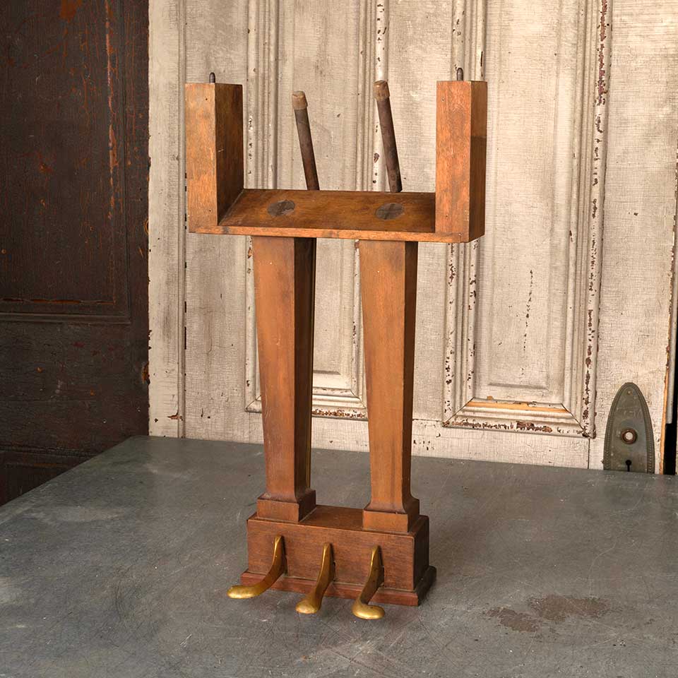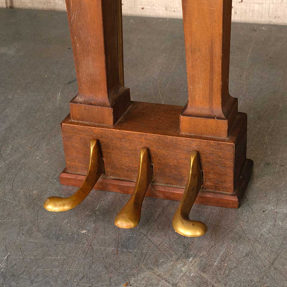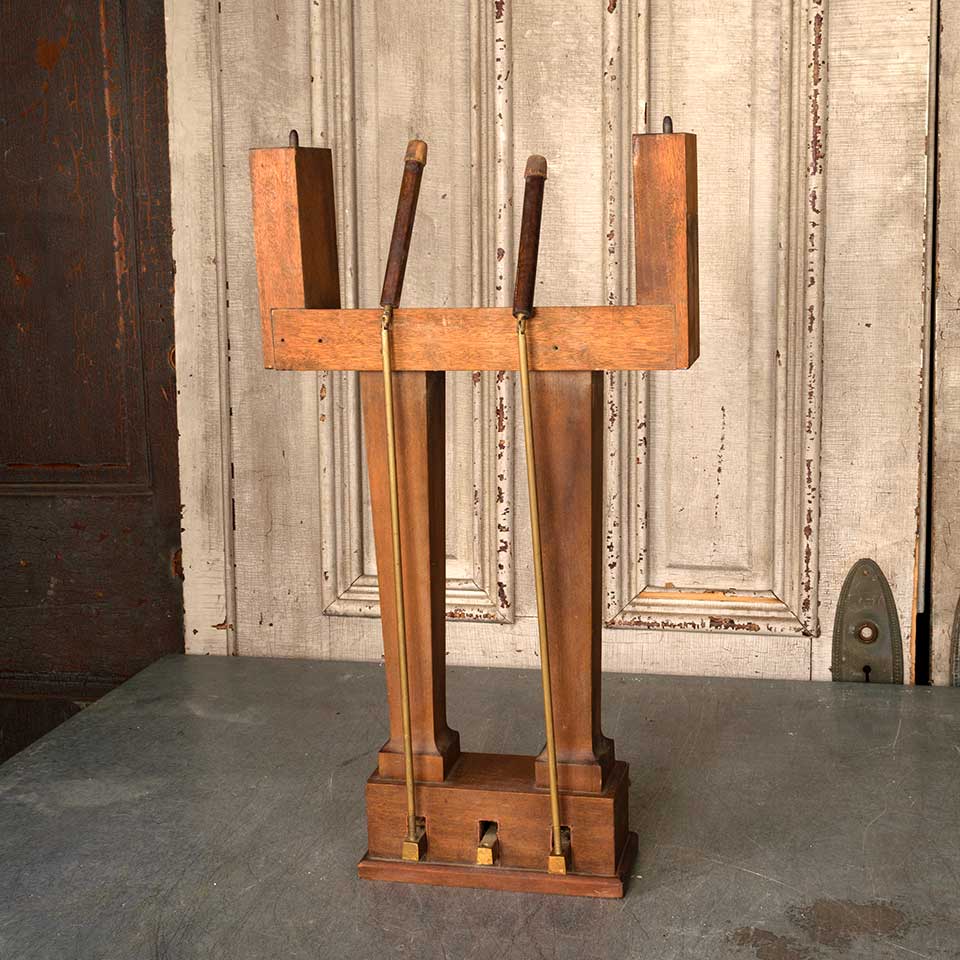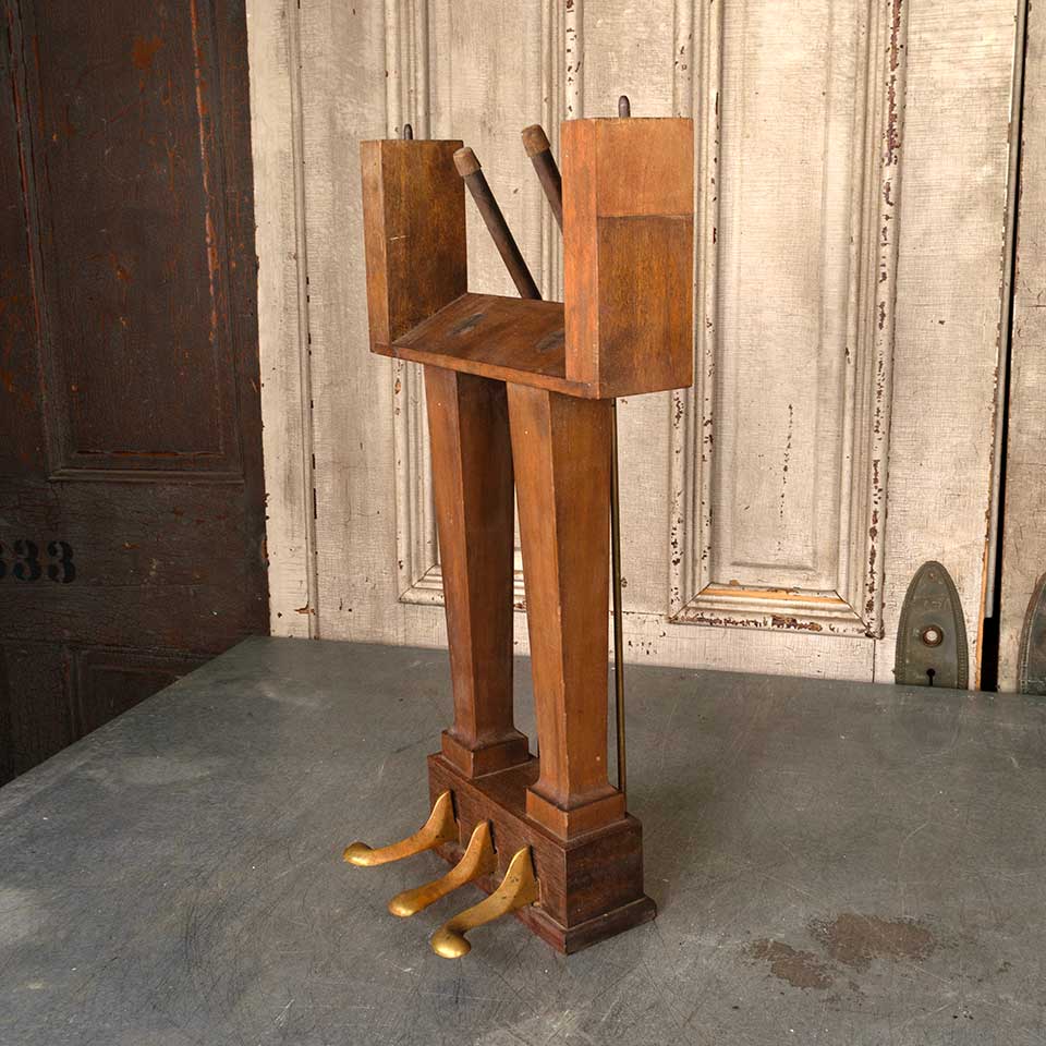 Antique wood piano lyre and brass pedals measuring approx. 13 1/8" wide x 23 1/2" tall x 7 1/2" front to back. See photos to evaluate condition.