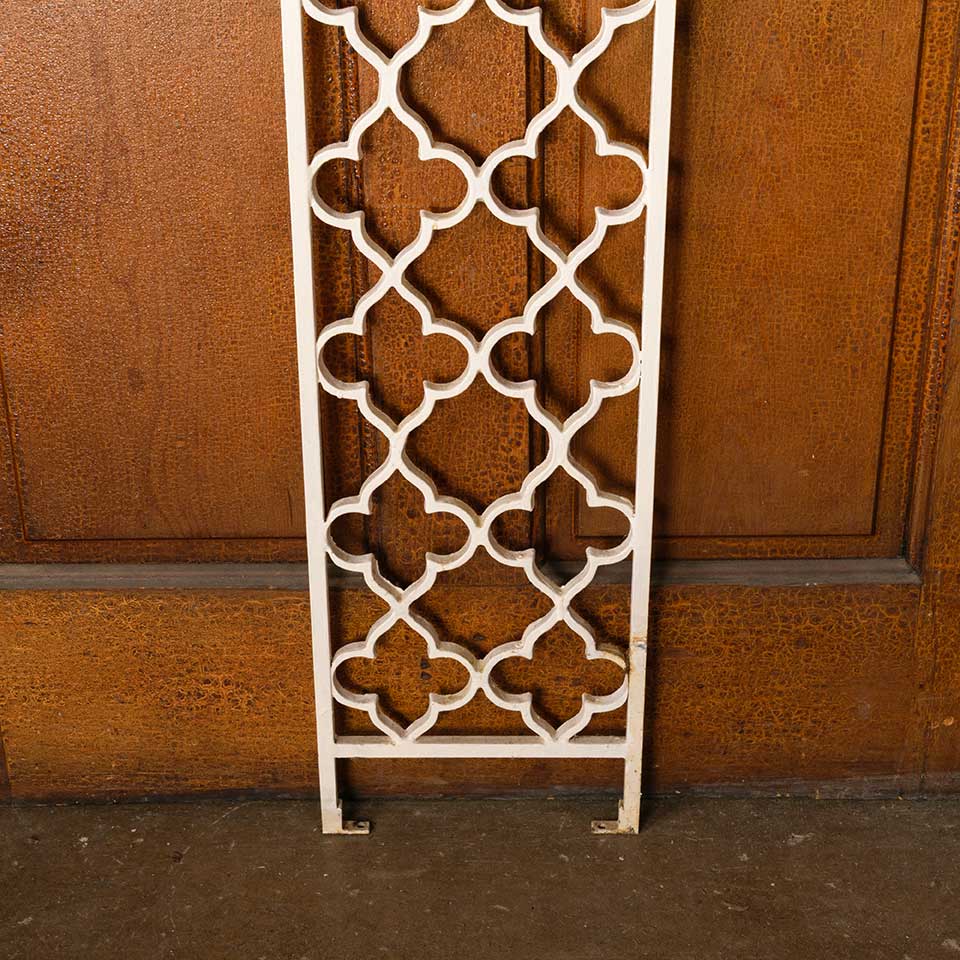 Architectural salvage vintage painted cast iron stairway / staircase vertical railing panel measuring approx. 10 1/4" wide x 97 3/8" tall x 1/2" front to back. See photos to evaluate condition.